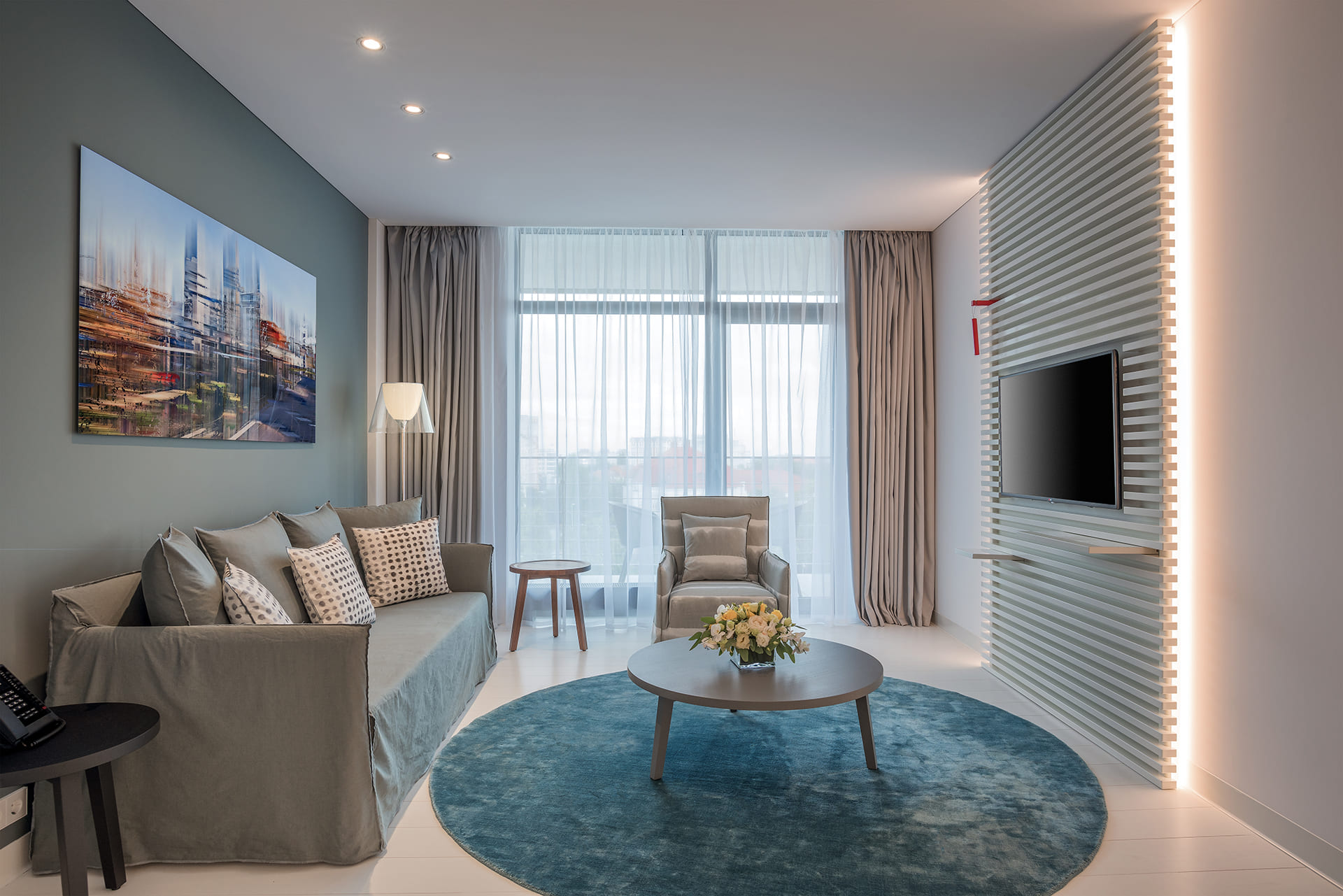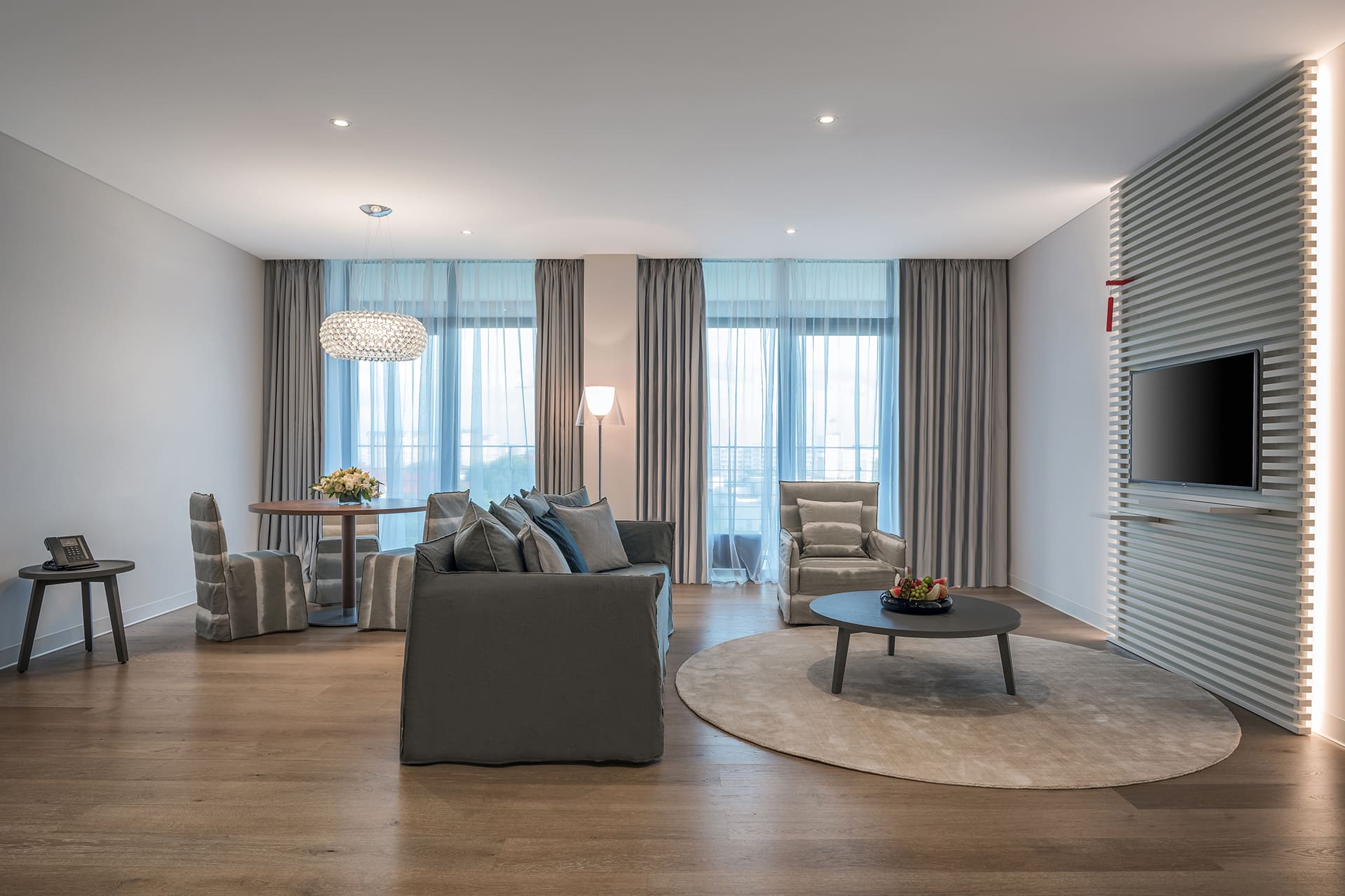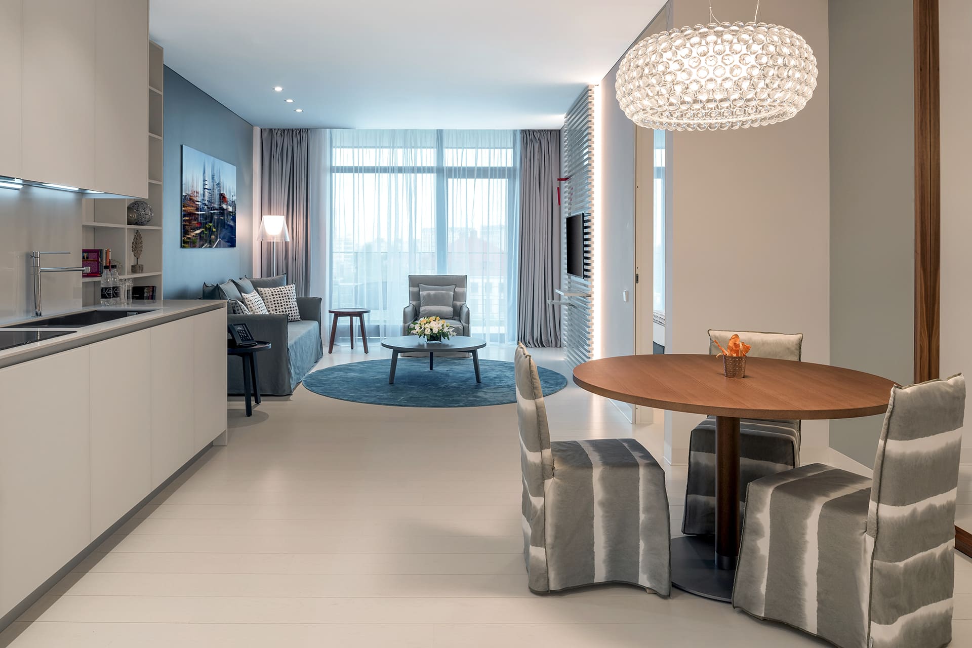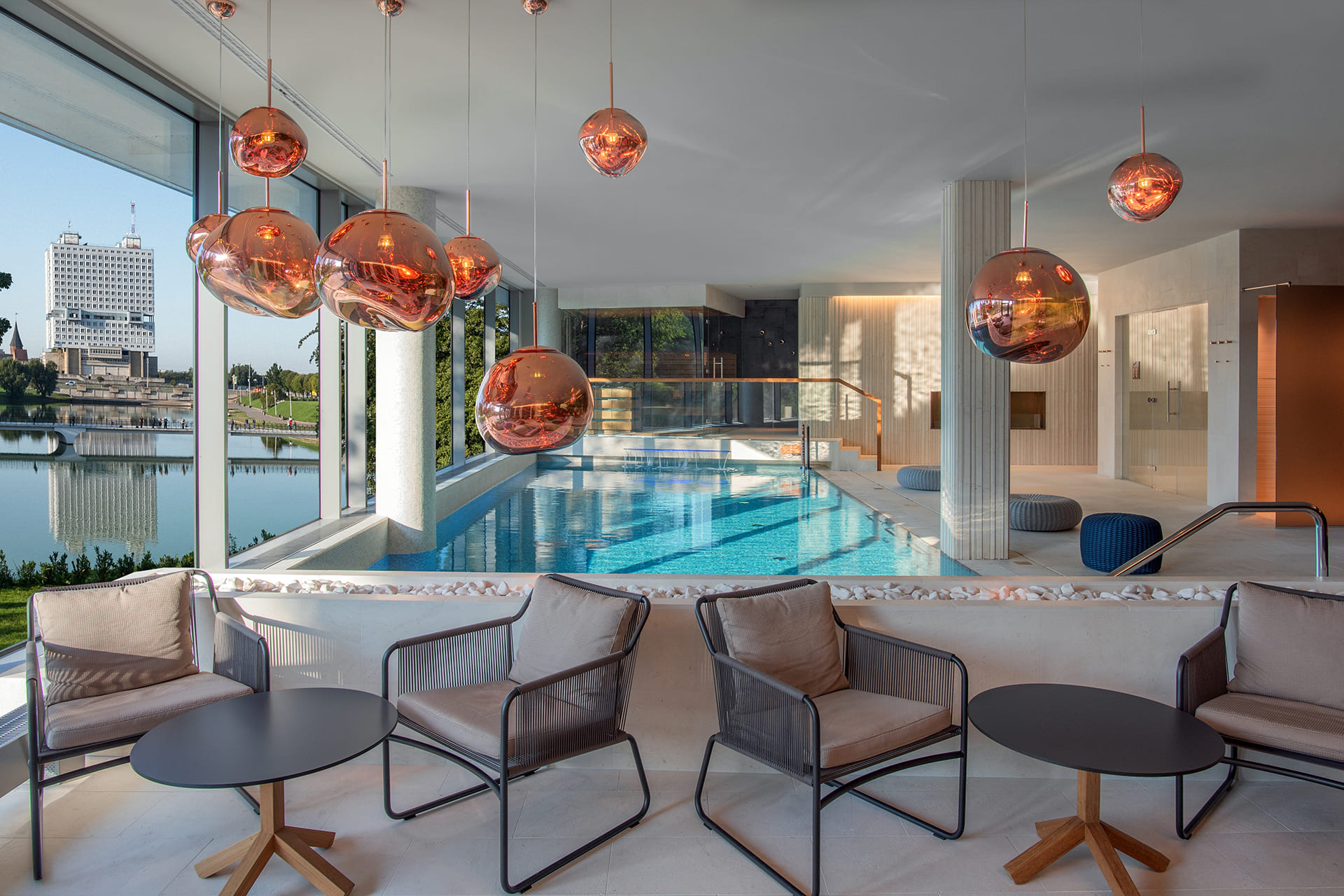 Crystal House Suite Hotel & SPA предлагает своим гостям 71 номер категории «Люкс», из них 69 номеров площадью от 75 до 175 кв. метров. Но самое важное, что на 9-ом этаже расположены 2 пентхауса площадью по 300 кв. метров с огромной частной террасой в 150 кв., собственным зимним садом, панорамой на город, в том числе новый стадион «Арена Балтика». С террасы абсолютно каждого номера открывается прекрасный вид на озеро — шум городских улиц остается за дверью номера и создается впечатление тихой уединенности.