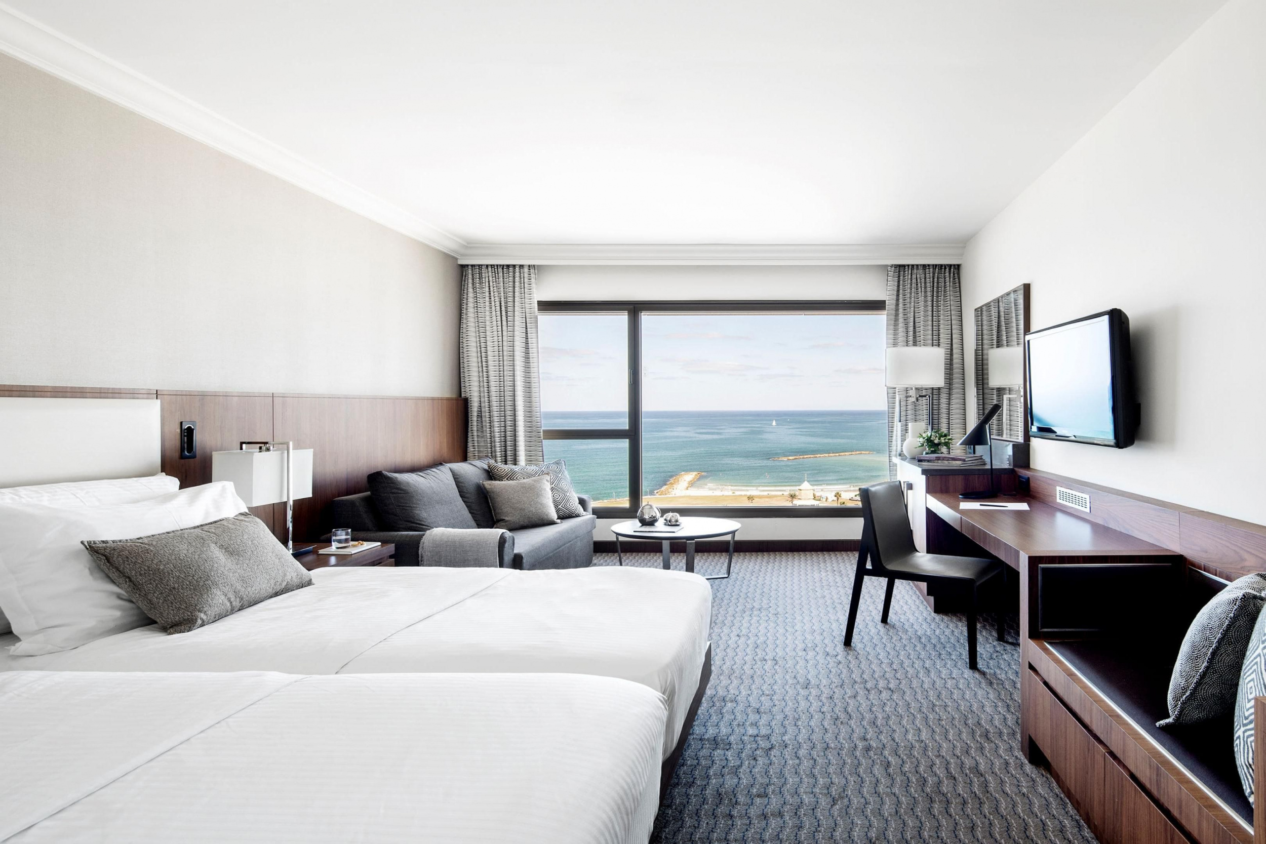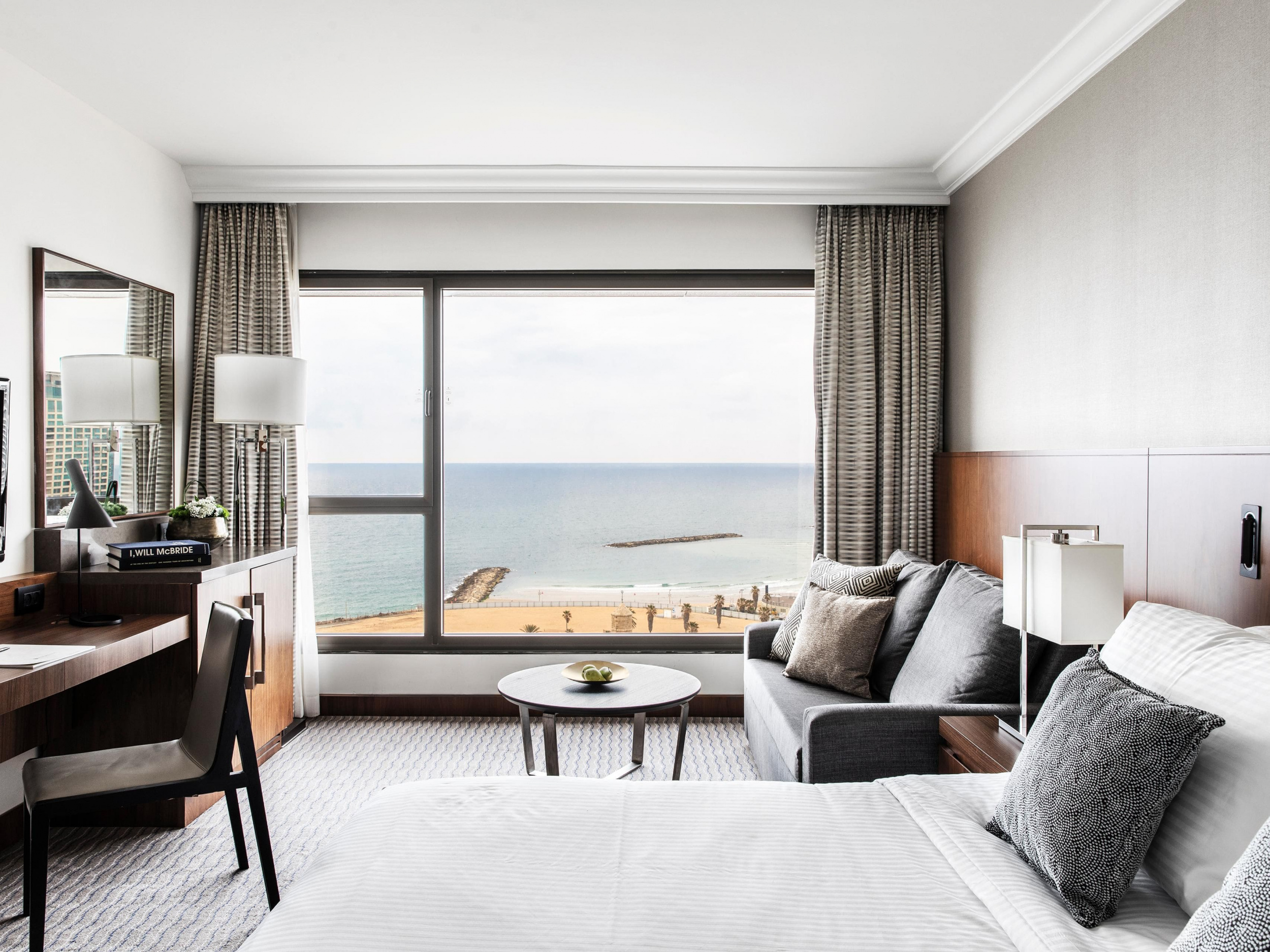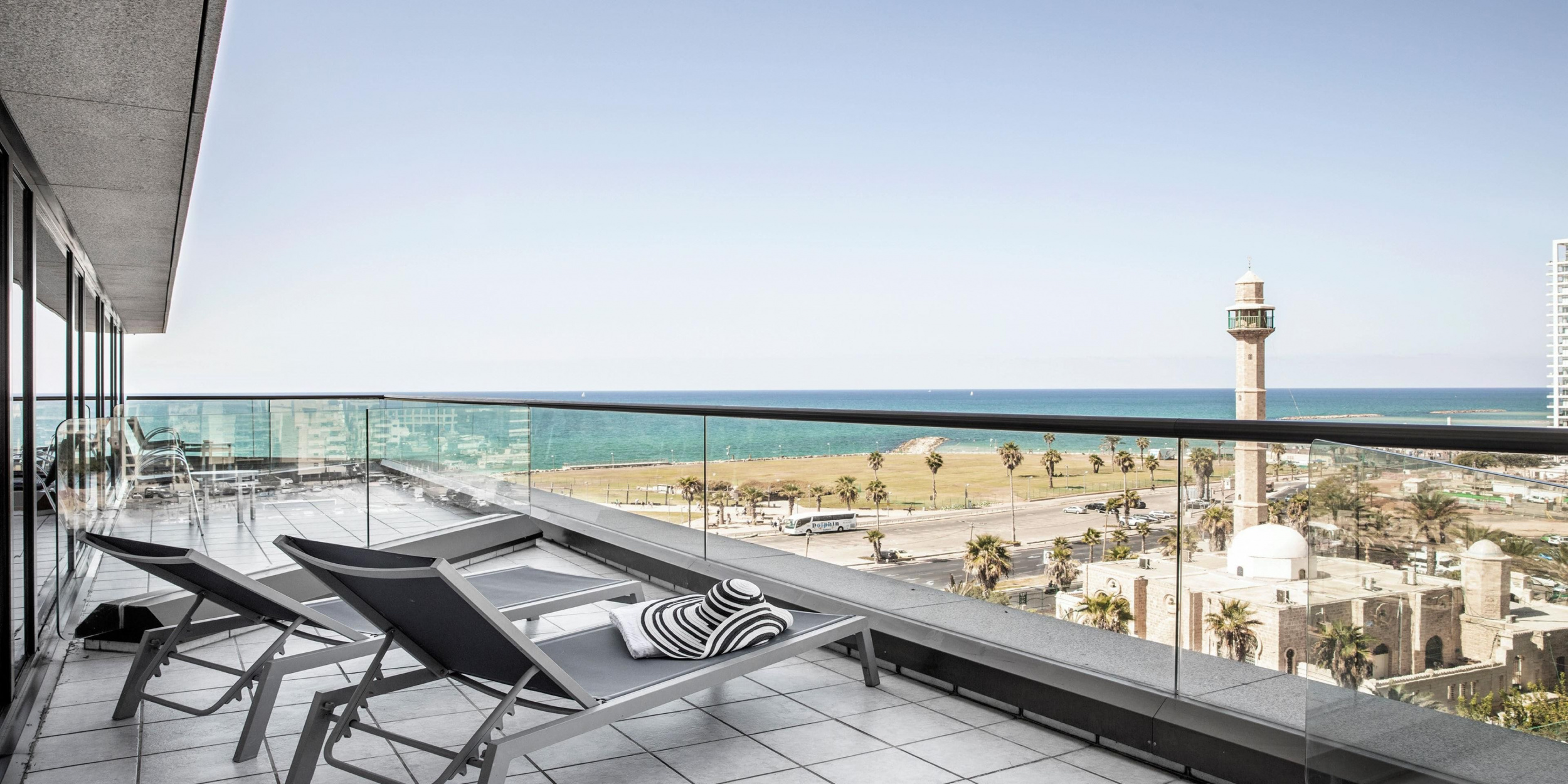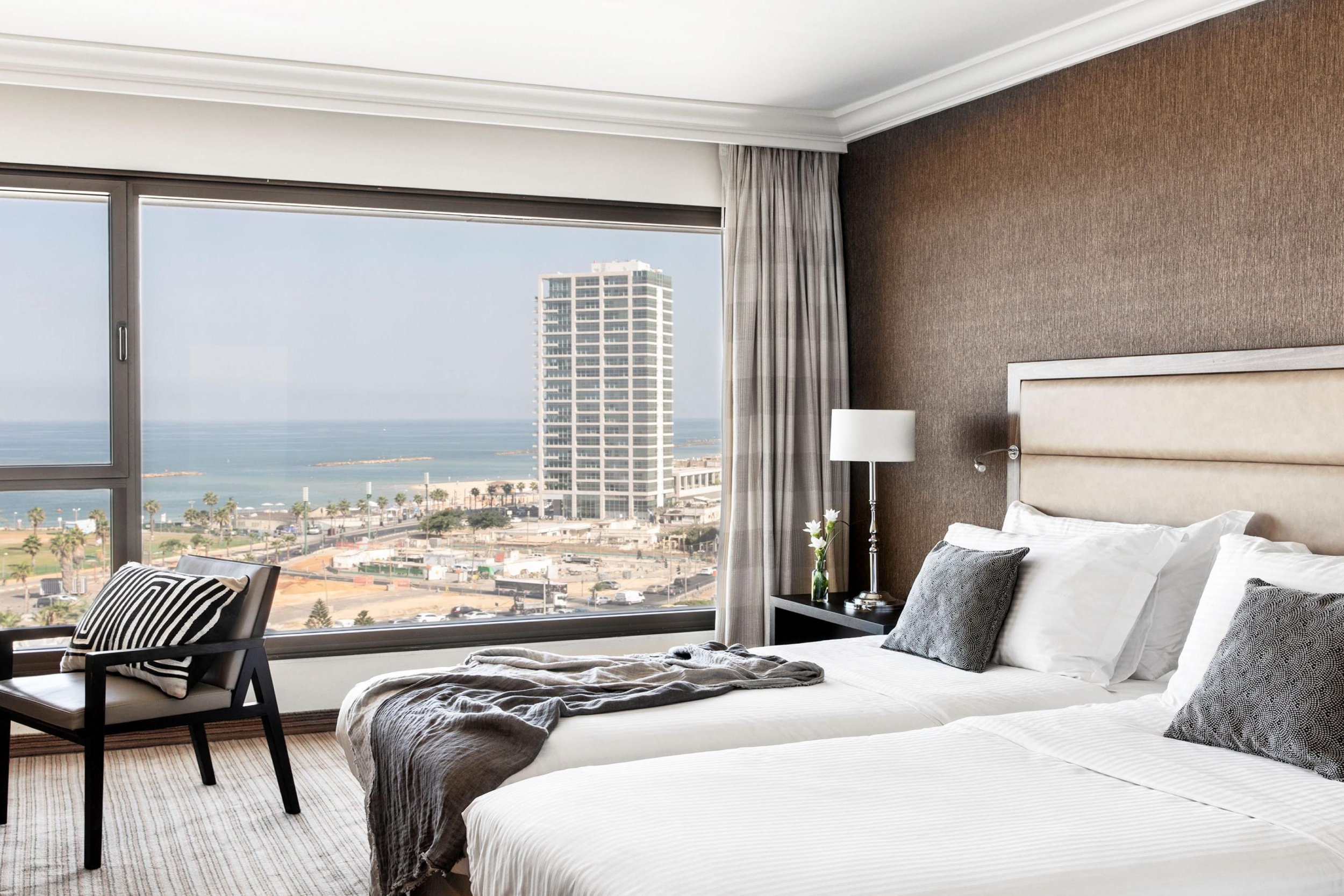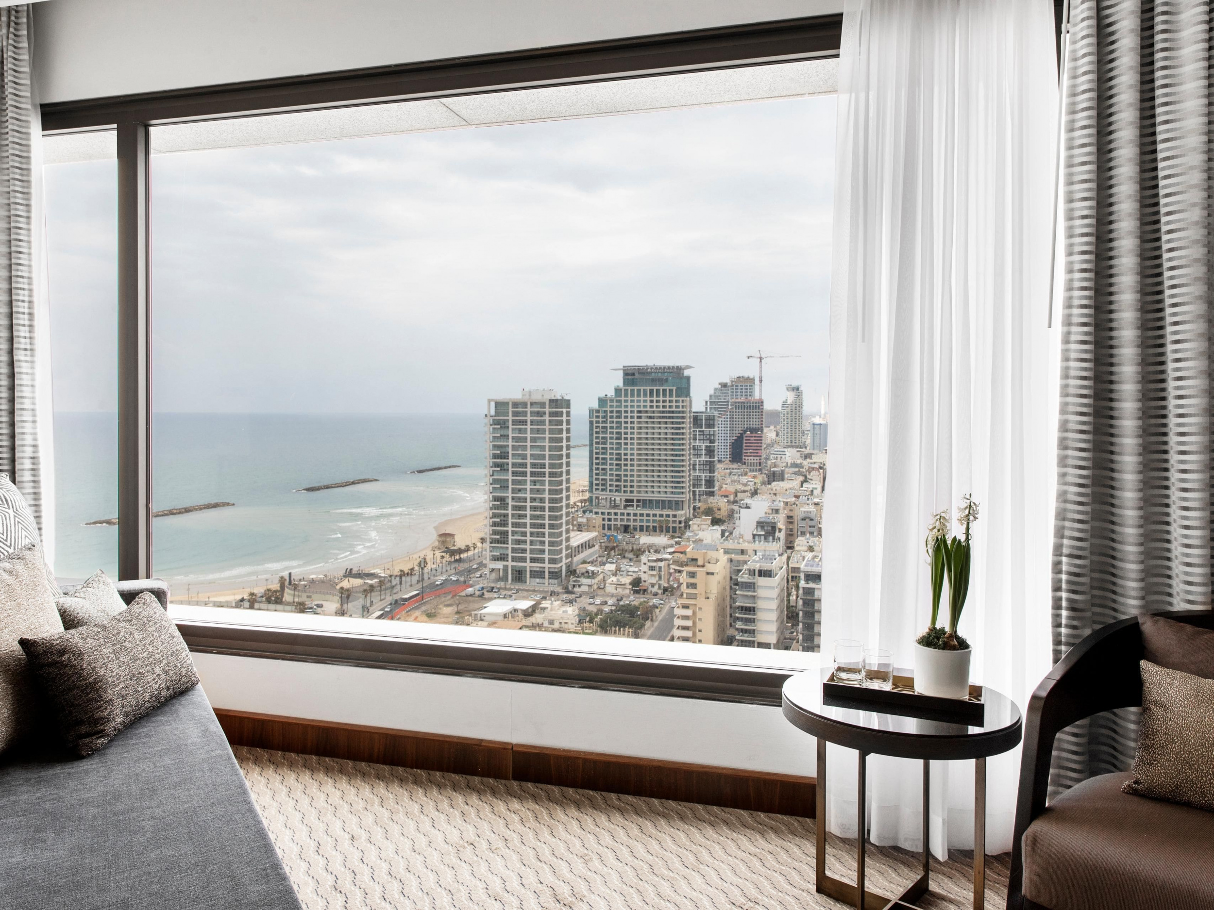 The Tel Aviv Suite (126 кв. м). Гостиная, спальня с кроватью king-size, ванная комната сухой сауной и тропическим душем. Вид на море и город. Гости данных номеров имеют особые привилегии. Также предоставляются услуги дворецкого.