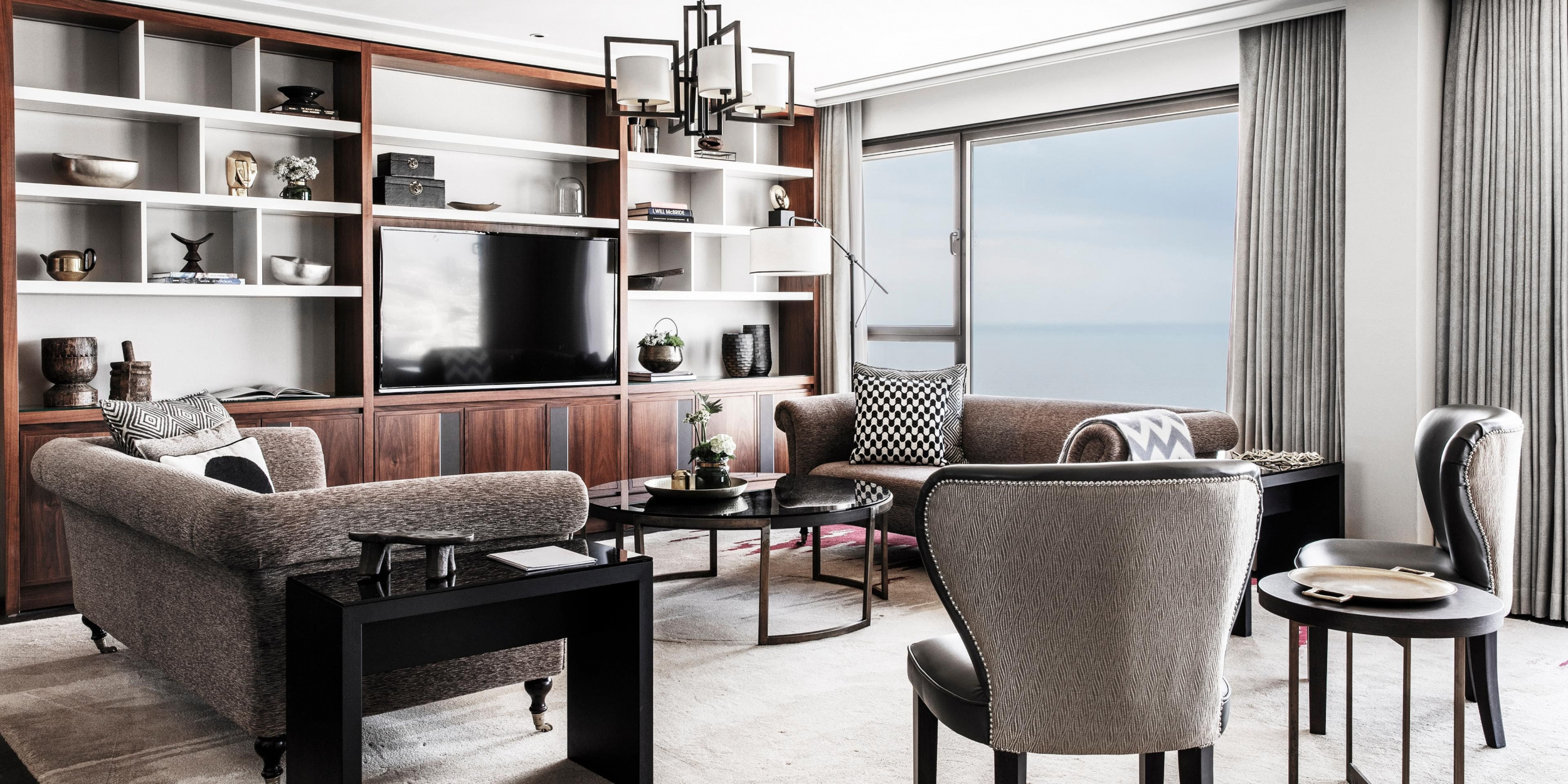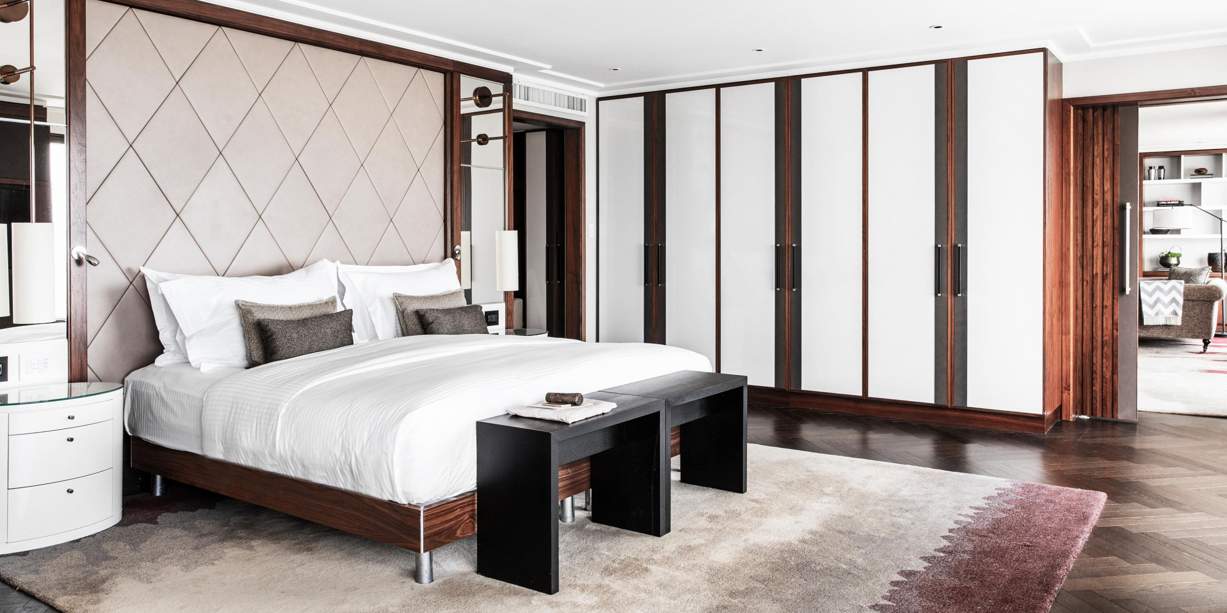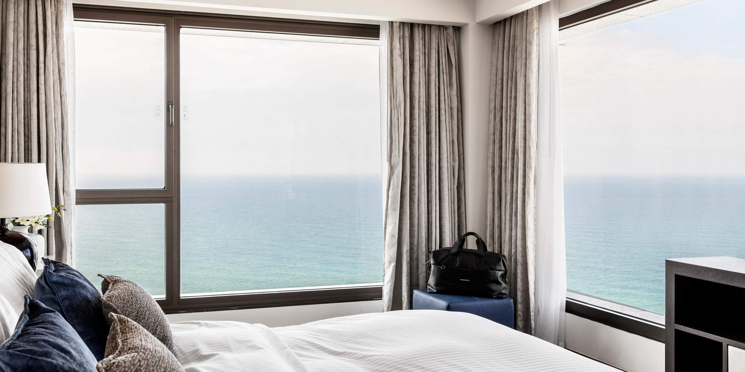 Corner Suite (35 кв. м). Гостиная, спальня с кроватью king-size, ванная комната. Вид на море. Гости данных номеров имеют особые привилегии.