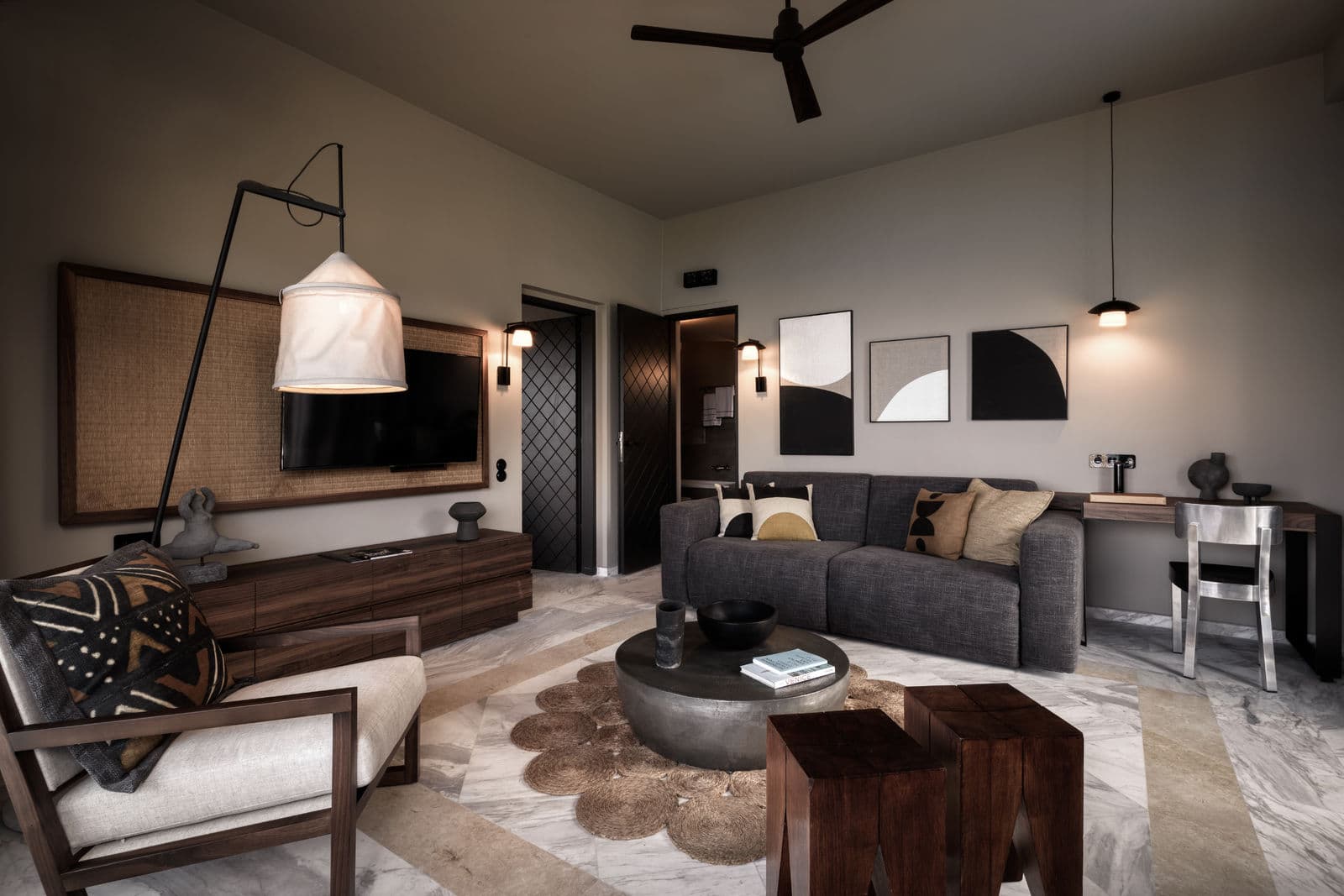 Терраса с открытым персональным бассейном, мини-кухня и обеденная зона на открытом воздухе, гостиная, спальня с кроватью king-size или двумя отдельными кроватями, ванная комната с ванной и душевой кабиной. Вид на территорию отеля. Гости данных номеров имеют особые привилегии. - 90 кв.м.