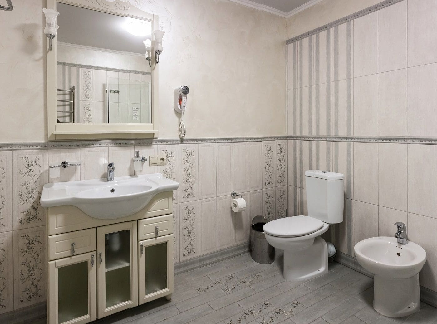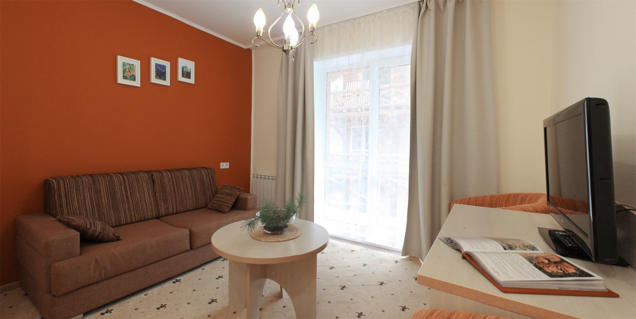 Отопление, кабельное телевидение, Wi-Fi доступ в Интернет, телефон, холодильник, фен, халаты, тапочки.