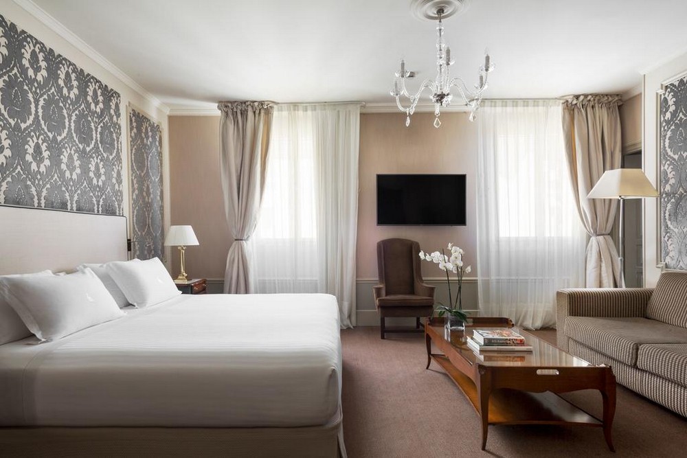 The Grand deluxe (ex. Classic deluxe room roman bath) (38 кв. м). Балкон, спальня с кроватью king-size или двумя отдельными кроватями, гардеробная, ванная комната с ванной и душевой кабиной с функцией «тропический дождь». Дополнительно: халаты, тапочки. Вид на улицу Gran Via. Возможно объединение номеров.