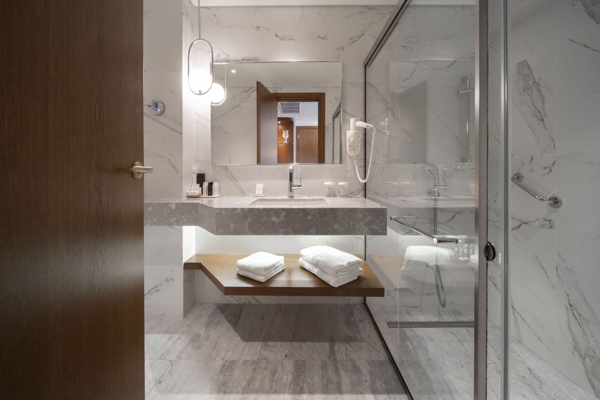 Кондиционер, спутниковое телевидение, телефон с прямым номером (в спальне и ванной комнате), мини-бар, электронный сейф, доступ в интернет.
