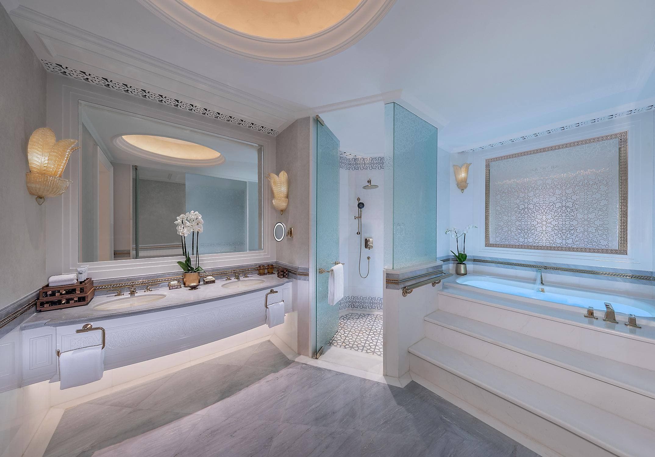 Отель Emirates Palace находится на берегу Персидского залива, на частном пляже протяженностью 1,3 км. С территории открывается вид на принадлежащую отелю бухту. Интерьер украшен мозаикой из серебра, золота и стекла, которая напоминает о богатой истории аравийского гостеприимства. К услугам гостей этого роскошного отеля, оснащенного по последнему слову техники, 14 кафе, баров и ресторанов. Отель сочетает в себе лучшие традиции старины и современности. В отеле Emirates Palace работают 14 превосходных ресторанов, где представлен широкий выбор изысканных блюд разных кухонь мира, которые удовлетворят любой, даже самый утонченный вкус. В ресторане Sayad с великолепным видом на залив подают превосходные блюда из морепродуктов. Бар Palace’s Caviar славится своим ассортиментом игристых вин мирового класса и икры. Также можно посетить ресторан Mezlai, куда приходят и местные жители, или ресторан La Vendôme, где сервируют «шведский стол» из блюд интернациональной кухни. В числе других удобств этого отеля — 2 больших плавательных бассейна и спа-центр с массажным кабинетом и полным спектром услуг по уходу за телом. Взрослые гости отеля Emirates Palace могут посетить фитнес-центр, а юные — детский клуб, где они наверняка захотят остаться подольше.