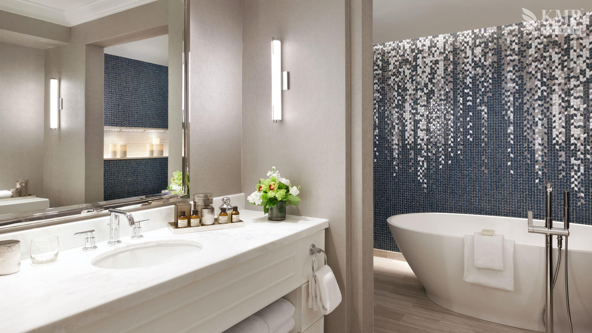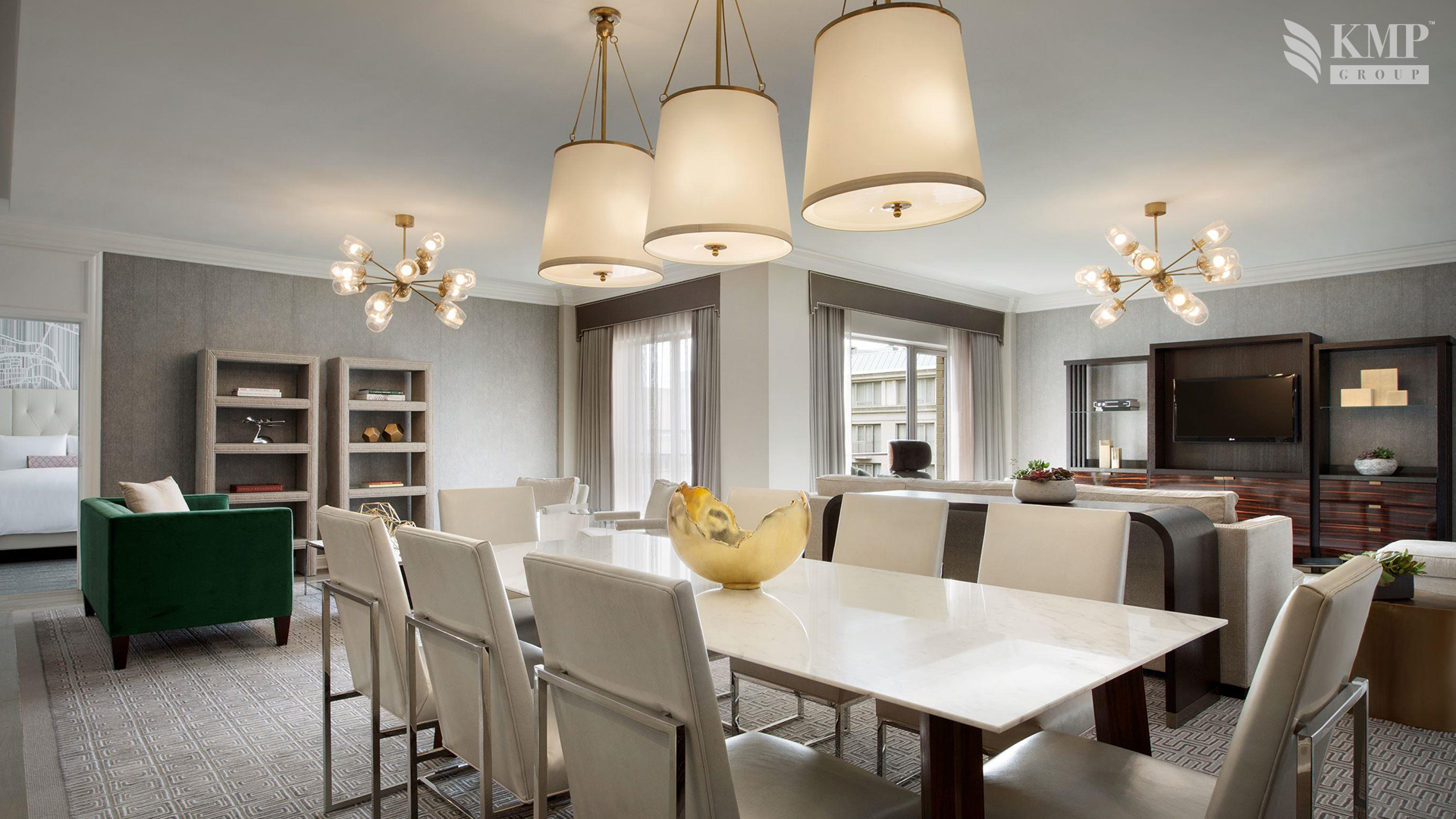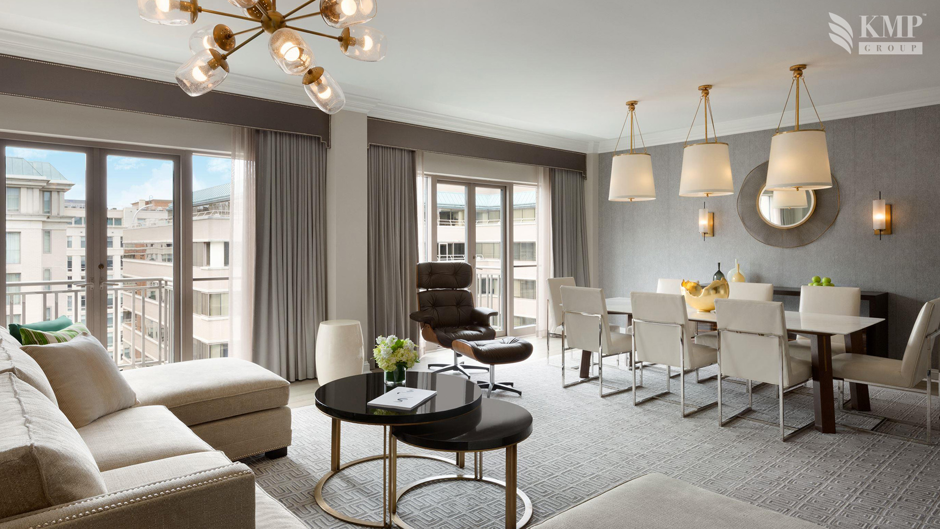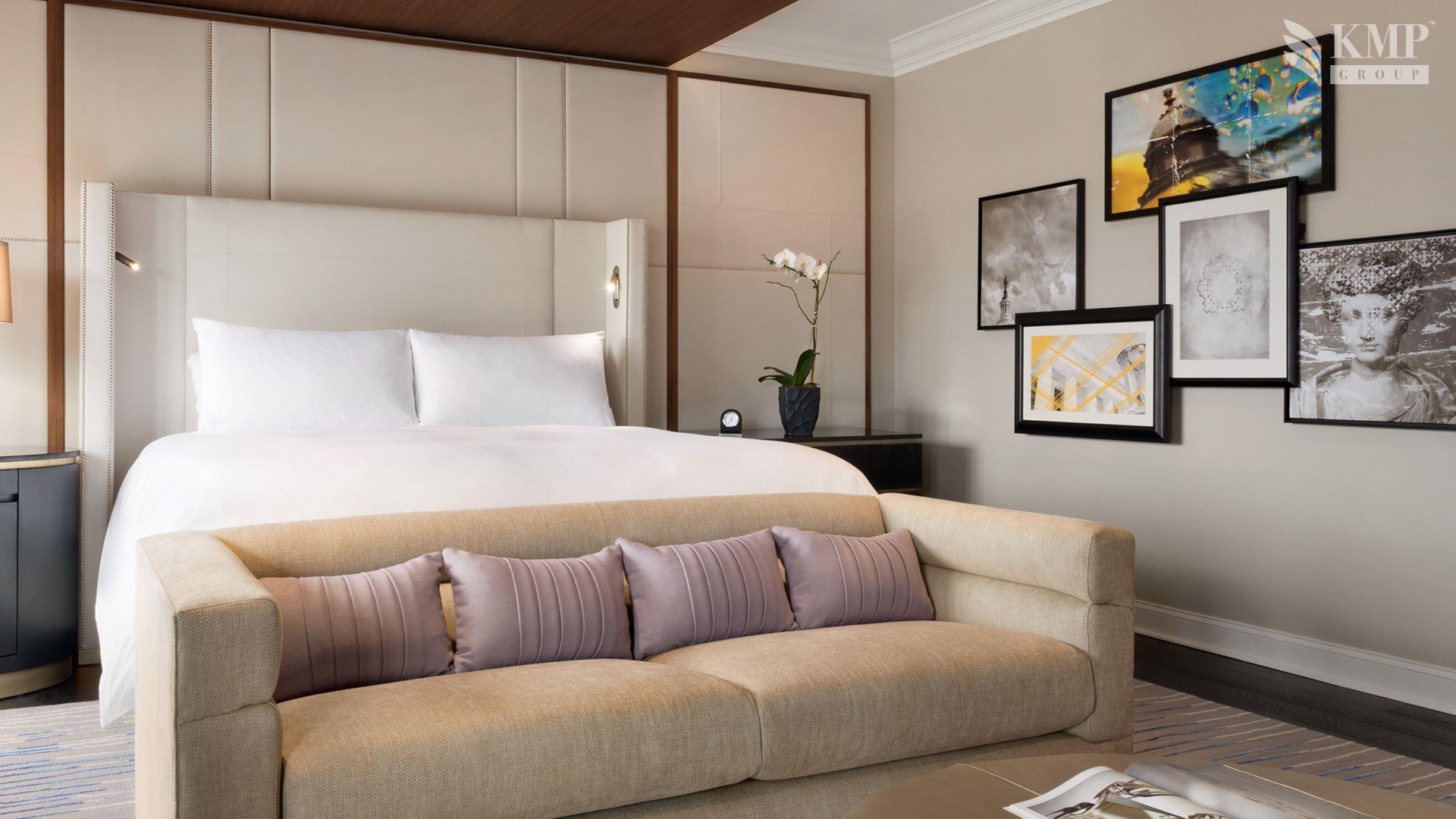 One Bedroom Suite (93 кв. м). Кровать king-size или две кровати queen-size, мраморная ванная комната, гостиная с зоной для отдыха (диван, журнальный столик) и столовой зоной (обеденный стол). Номер с видом на город. Дополнительно в номере - сейф, проигрыватель CD-дисков.