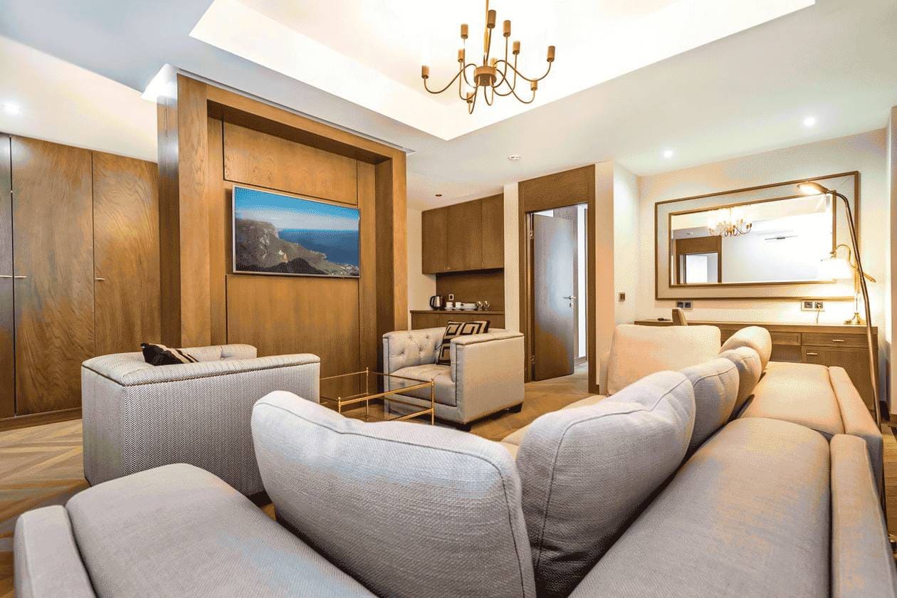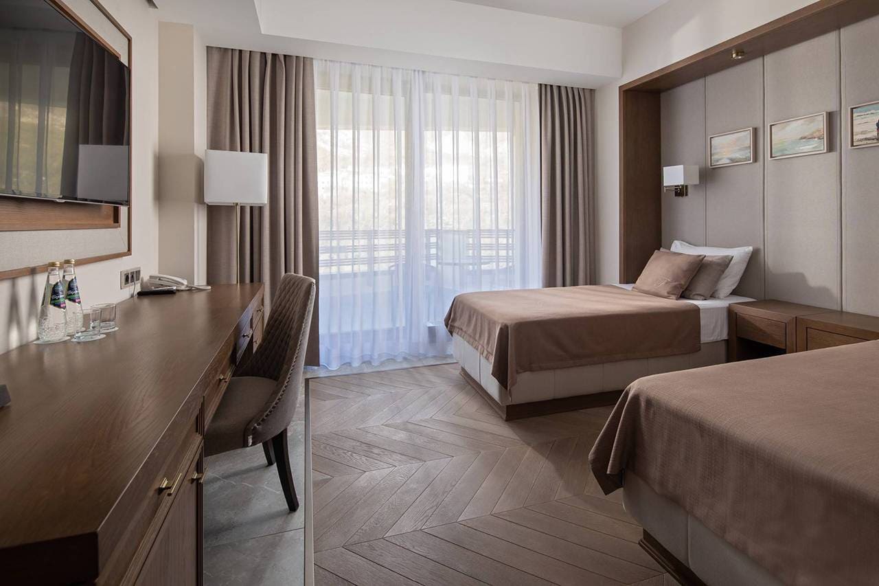 Люкс Просторный двухкомнатный номер с уютной гостиной и великолепным видом на Крымские горы и церковь Воскресения Христова. Идеально подходит для большой семьи.