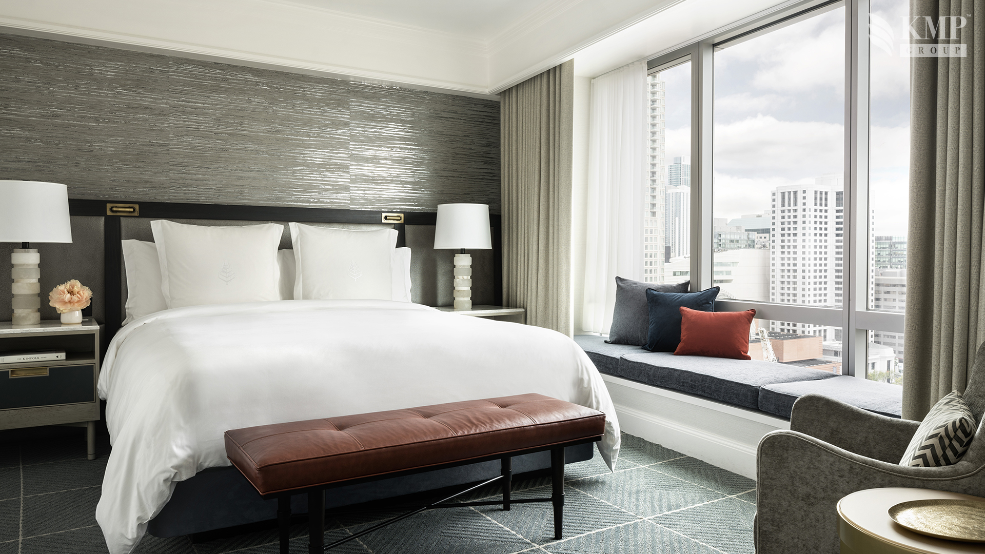 Deluxe-view room (43 кв. м): спальня с кроватью king-size или двумя отдельными кроватями, ванная комната с ванной и душевой кабиной. Расположены с 12 по 17 этаж. Вид на улицу Маркет Стрит или сады Йерба-Буэна.