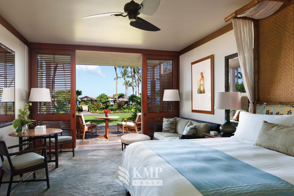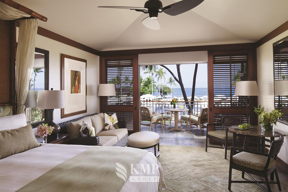Anela'kai suite (98 кв. м). Балкон, персональный открытый бассейн, гостиная, спальня с кроватью king-size, гардеробная, 2 ванные комнаты (одна – с ванной и душевой кабиной, вторая – с душевой кабиной), душ на открытом воздухе (по запросу). Расположены на первом этаже коттеджей рядом с пляжем. Вид на океан. Возможно присоединение дополнительной спальни.