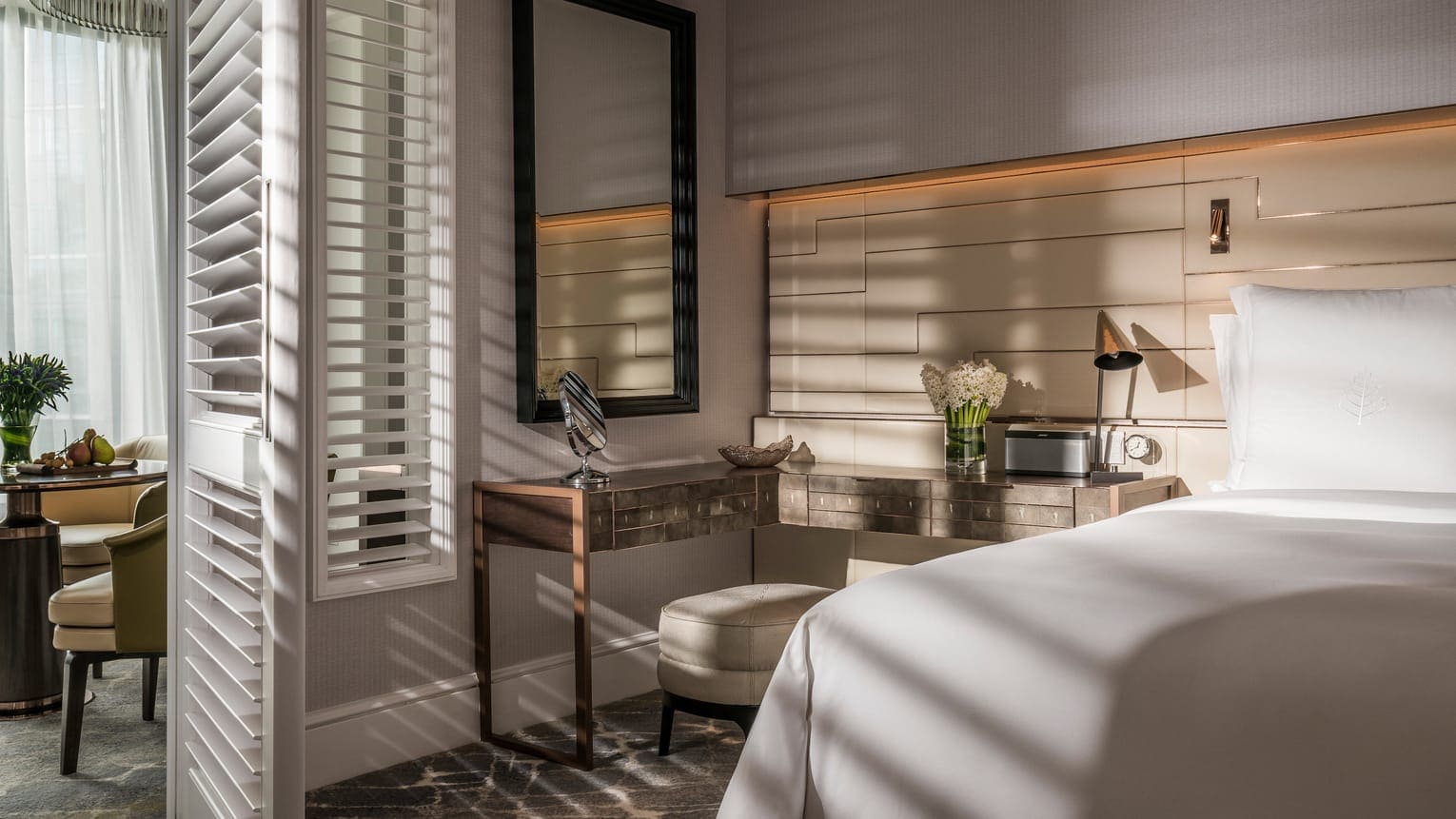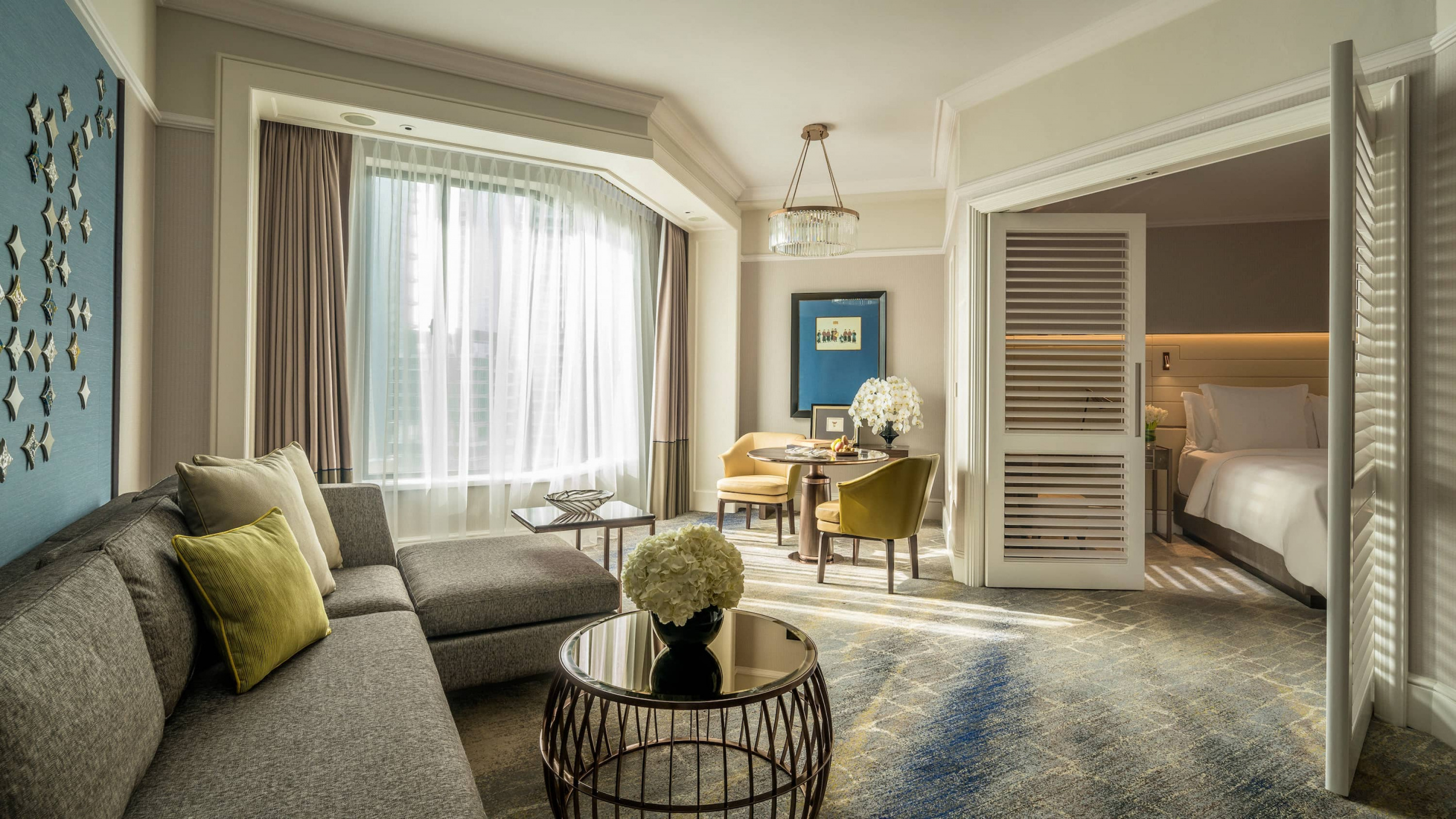 Governor suite 1-bedroom (170-218 кв.м). Номер расположен на верхнем, 19-ом этаже отеля, в номере - одна (170 кв.м) или две (218 кв.м) спальни. Первая спальня с кроватью king-size, вторая спальня – две кровати twin, просторная гостиная с диваном, журнальным столиком, CD-плеером и столовой зоной, гостевой туалет, из каждой спальни – выход в собственную ванную комнату с двумя раковинами, ванной, душевой кабиной и отдельным туалетом.