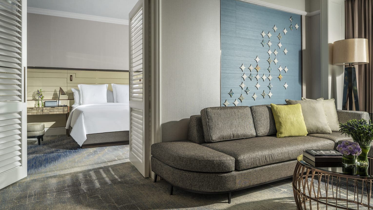 Royal suite 1-bedroom (132-182 кв.м). Номер расположен на 18-ом этаже отеля, в номере может быть одна (132 кв.м) или две (182 кв.м) спальни. Первая спальня с кроватью king-size, вторая спальня – с кроватью king-size, гостиная с диваном, журнальным столиком, CD-плеером и столовой зоной, гостевой туалет, из каждой спальни – выход в собственную ванную комнату с двумя раковинами, ванной, душевой кабиной и отдельным туалетом.