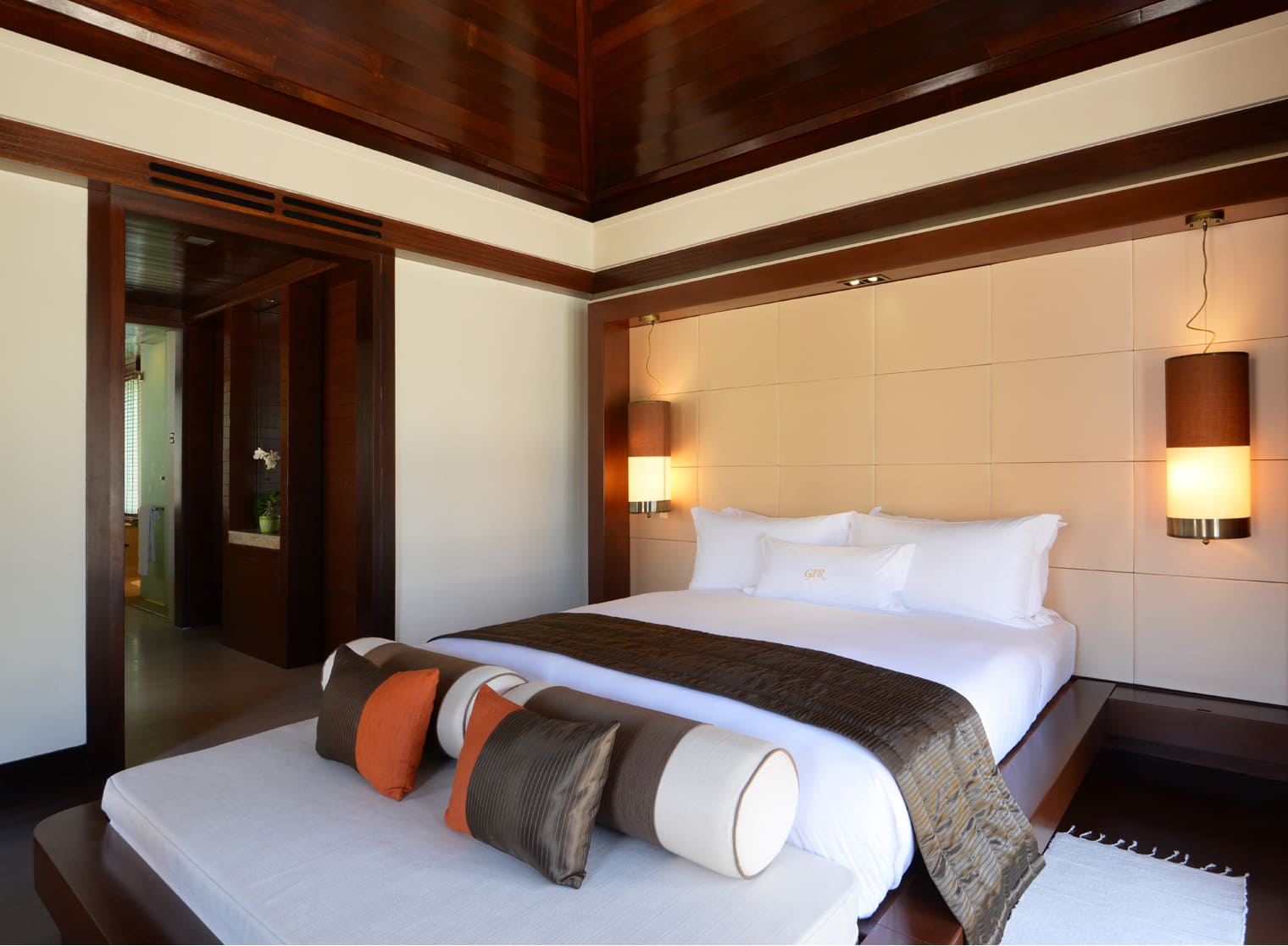 Удобства наших вилл включают в себя удобные кровати, письменный стол, сейф с электроприводом, телевизор с плоским экраном и спутниковыми каналами, большую открытую ванную комнату с большой ванной и двумя туалетными столиками, а также открытую веранду с кушетками.