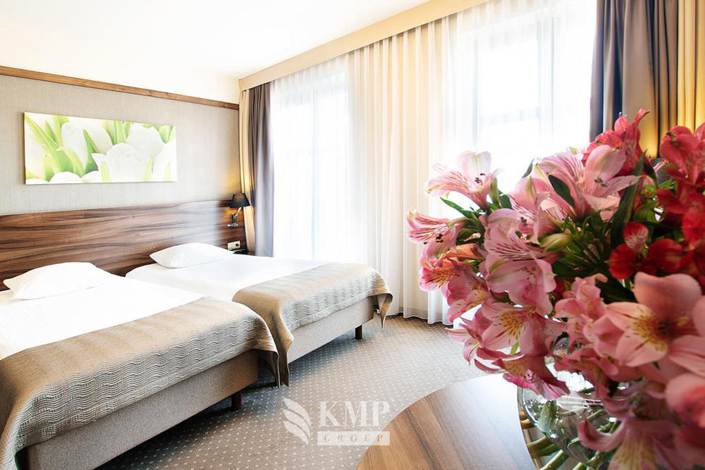 Все номера оформлены в классическом стиле, в естественных тонах. В каждом номере имеется гостиная зона, шкаф для одежды и телевизор с плоским экраном. В ванной комнате установлен душ.