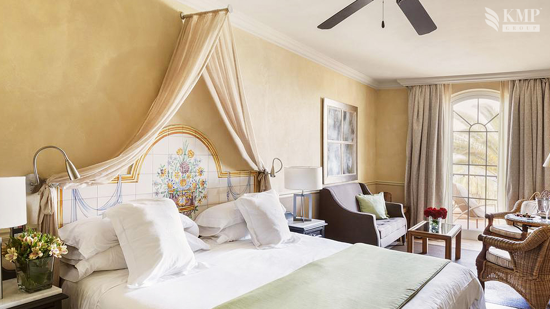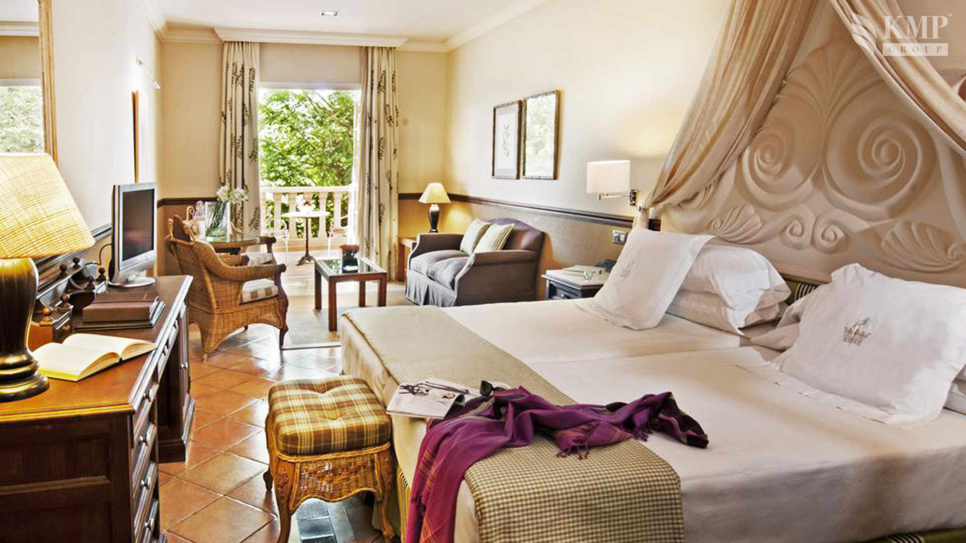 Junior Suite – Casas Ducales (40-45 кв. м). Терраса, балкон или французский балкончик, объединенная со спальней гостиная (диван раскладывается в дополнительное спальное место для двоих детей или одного взрослого), ванная комната. Вид на сад или море. Предоставляются услуги дворецкого.