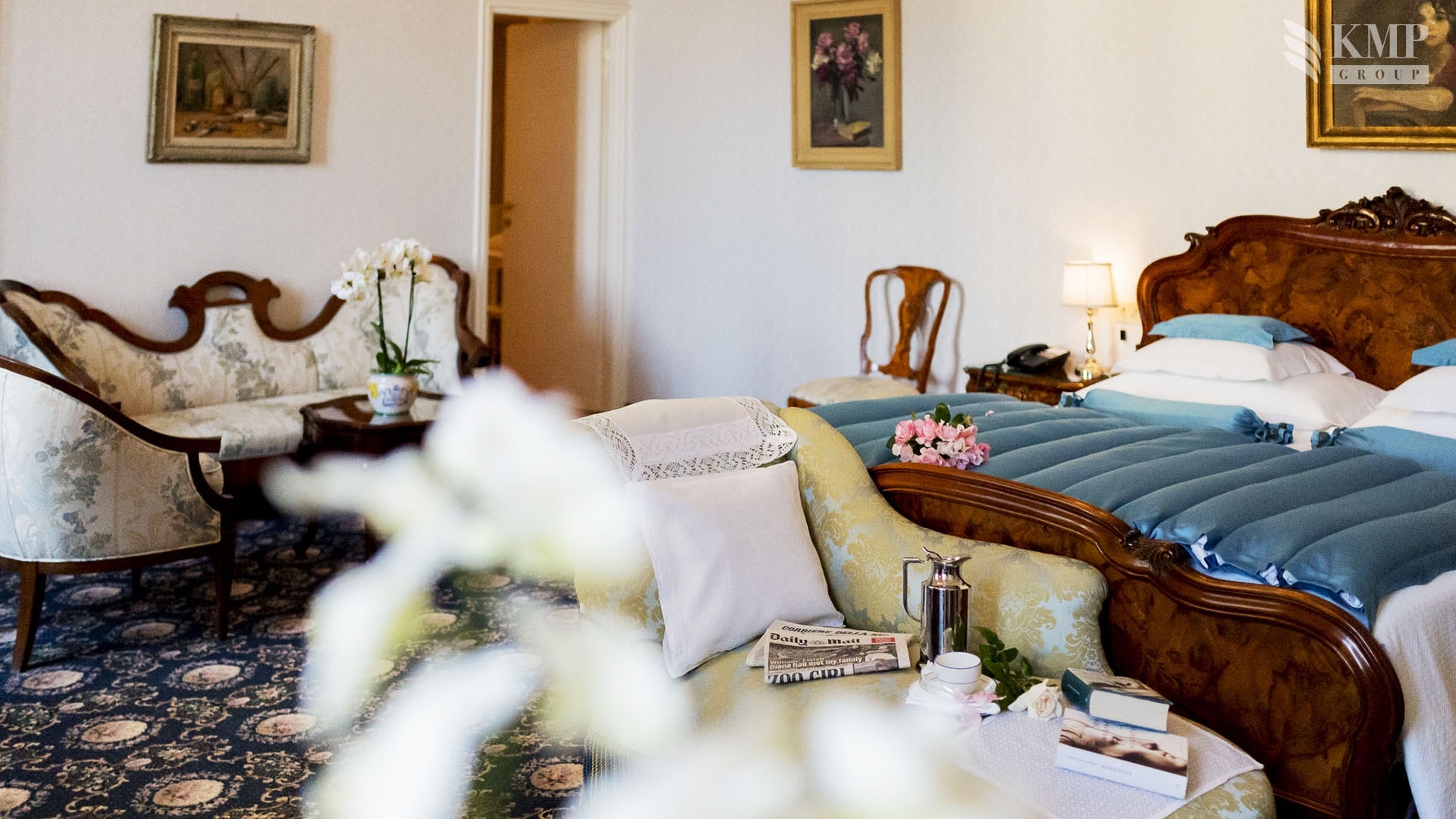 Deluxe double room (38 кв.м). Гостиная зона, спальня, ванная комната с ванной и душевой. Вид на озеро.