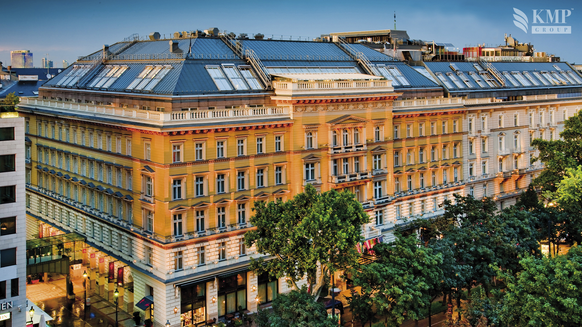 Presidential Suite (220 кв. м). Балкон, просторная гостиная, столовая, кухня, кабинет, спальня с удобной кроватью, ванная комната с джакузи и душевой. Из окон открывается вид на улицу Рингштрассе.