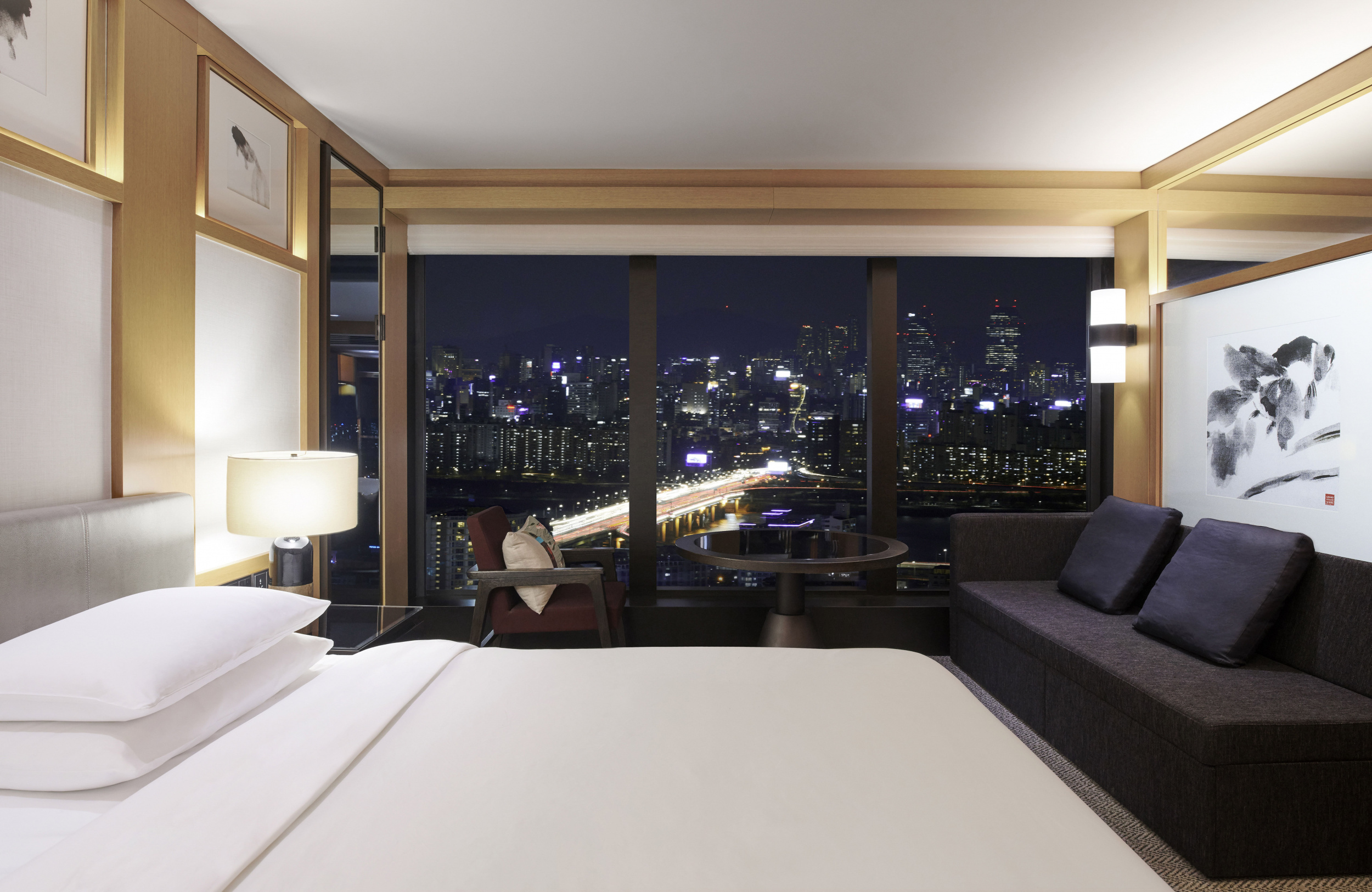 Похожий на стеклянный замок в серебряной оправе, отель Grand Hyatt Seoul гордо стоит на самой вершине горы Намсан – одной из достопримечательностей Сеула, с которой связаны многие исторические события древней корейской столицы. Вокруг отеля раскинулся обширный живописный парк, прогуливаясь по которому можно любоваться многочисленными водопадами, а также великолепной панорамой города и реки Хан.