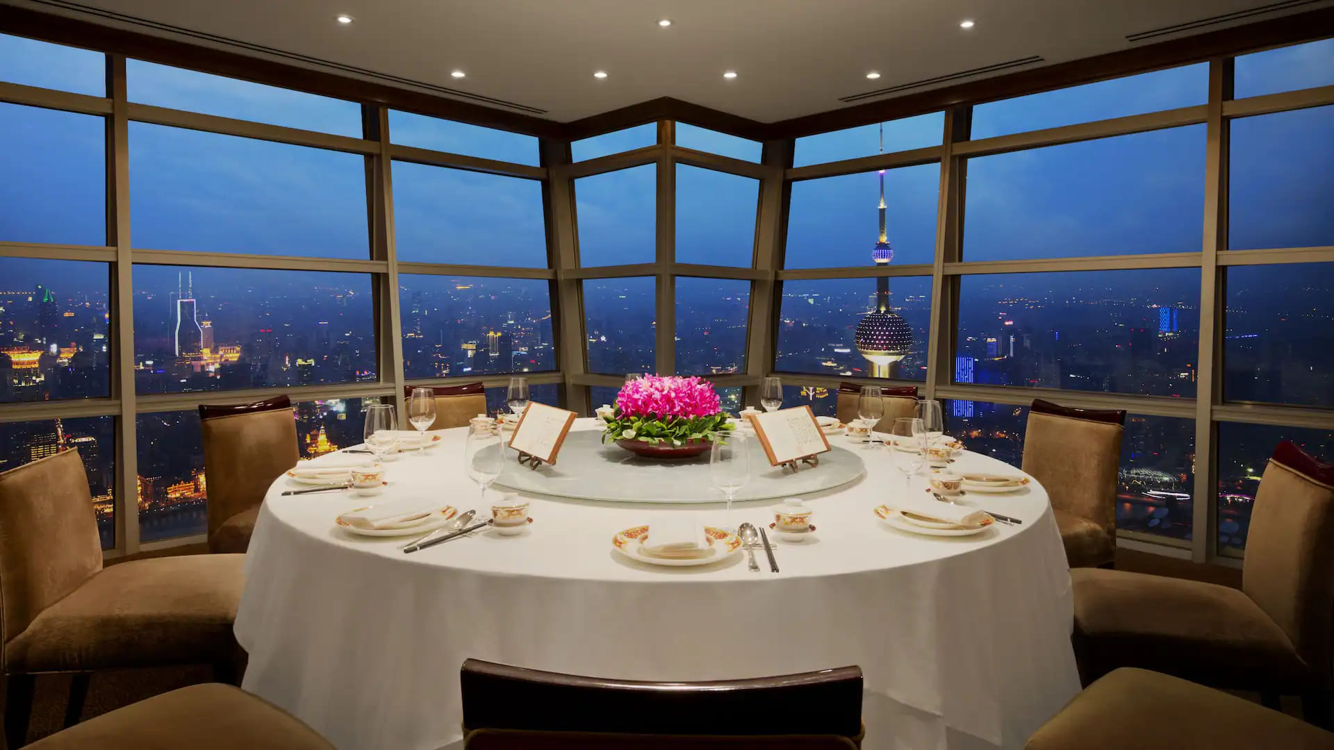 Presidential suite (175 кв. м). Гостиная, столовая, кухня, спальня с кроватью king-size, гардеробная, ванная комната с джакузи, сауной и отдельной душевой кабиной. Дополнительно: телевизор в ванной комнате, кофеварка. Вид на небоскребы района Pudong и реку. Гости данного номера имеют особые привилегии.