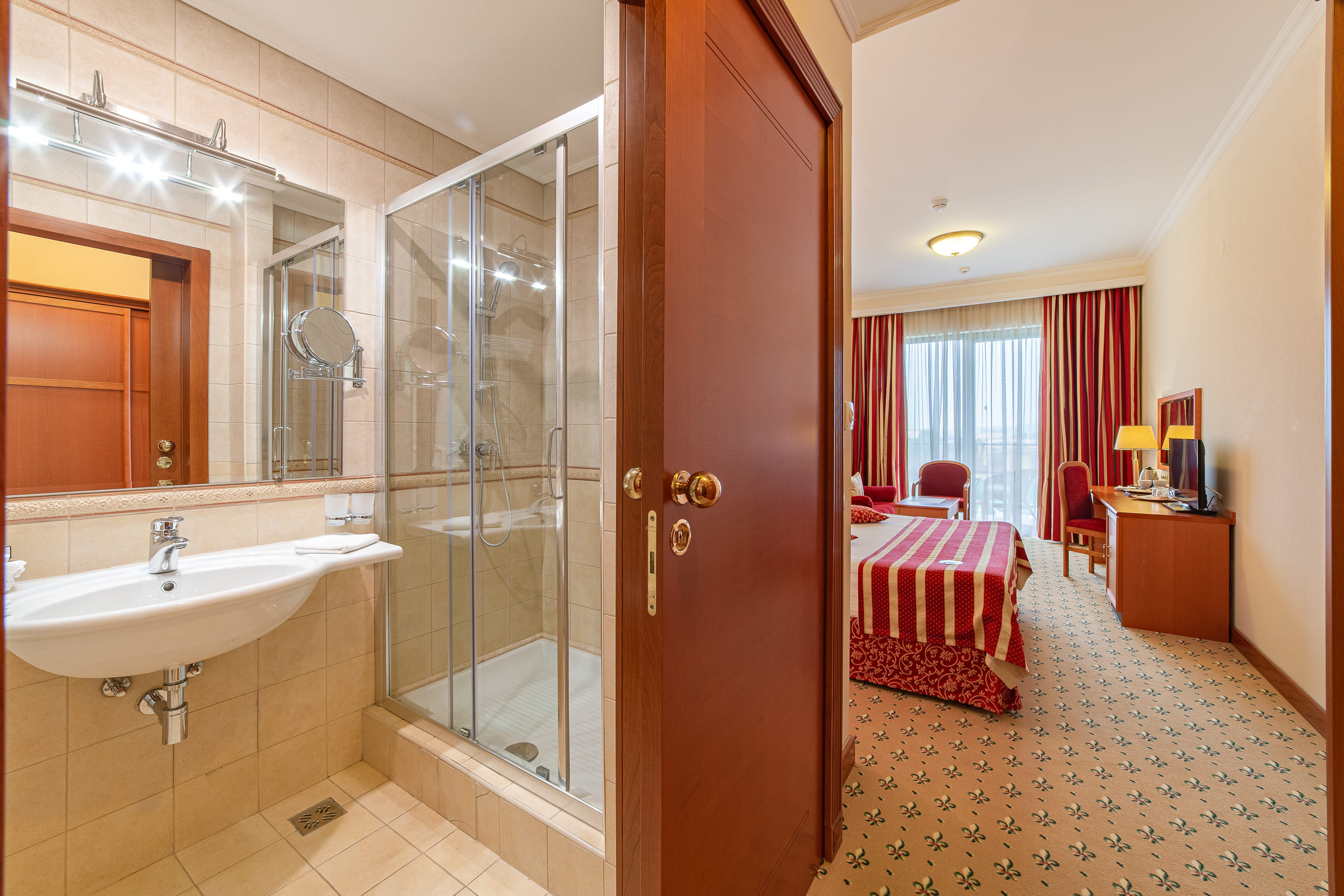 Standard Twin room с видом на город (23 кв.м.). Просторный 2-комнатный номер это идеальный вариат размещения для семей, так как он состоит из двух спален, в каждой спальне двуспальная или две односпальные кровати, также в номере Вас ждет санузел с ванной.