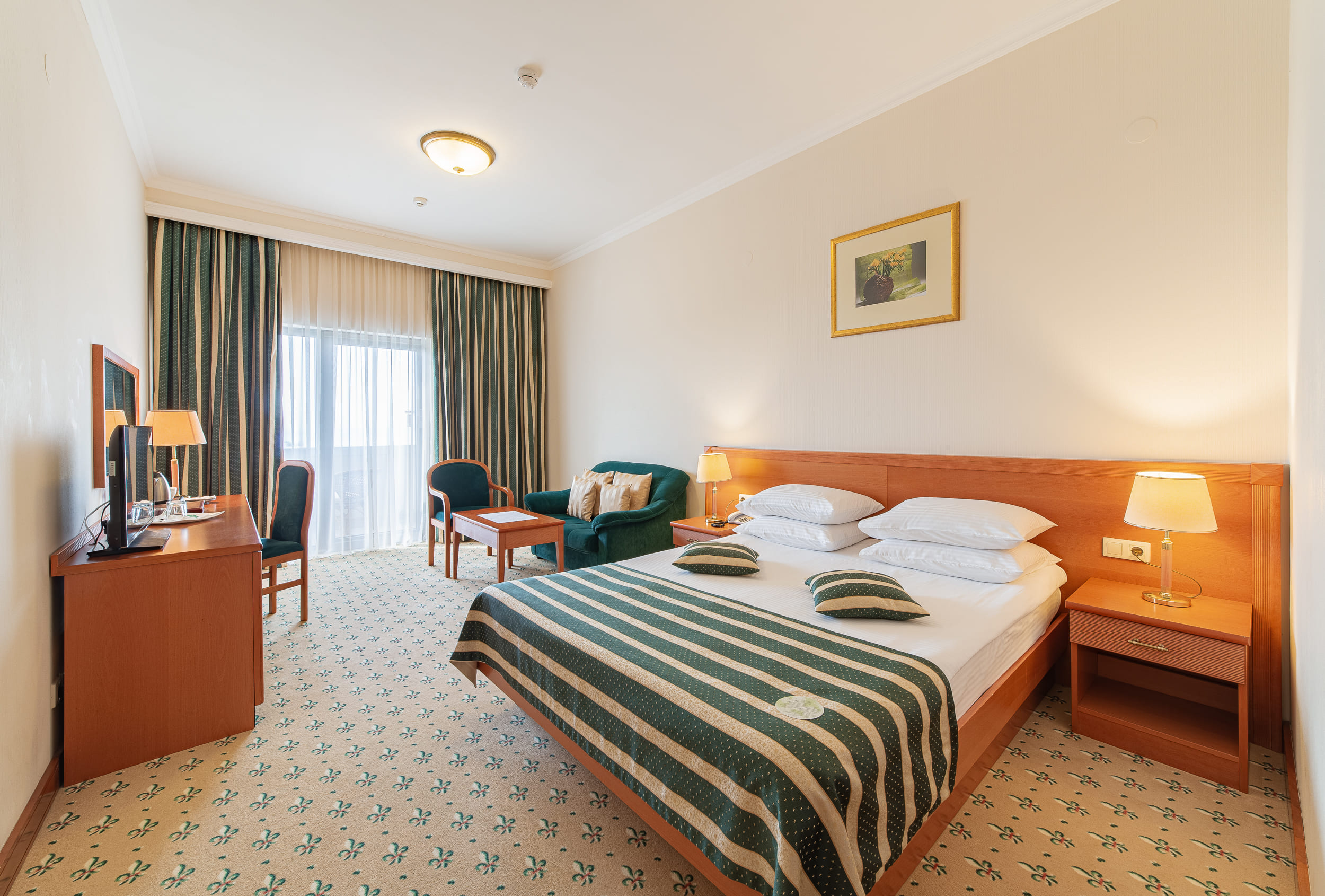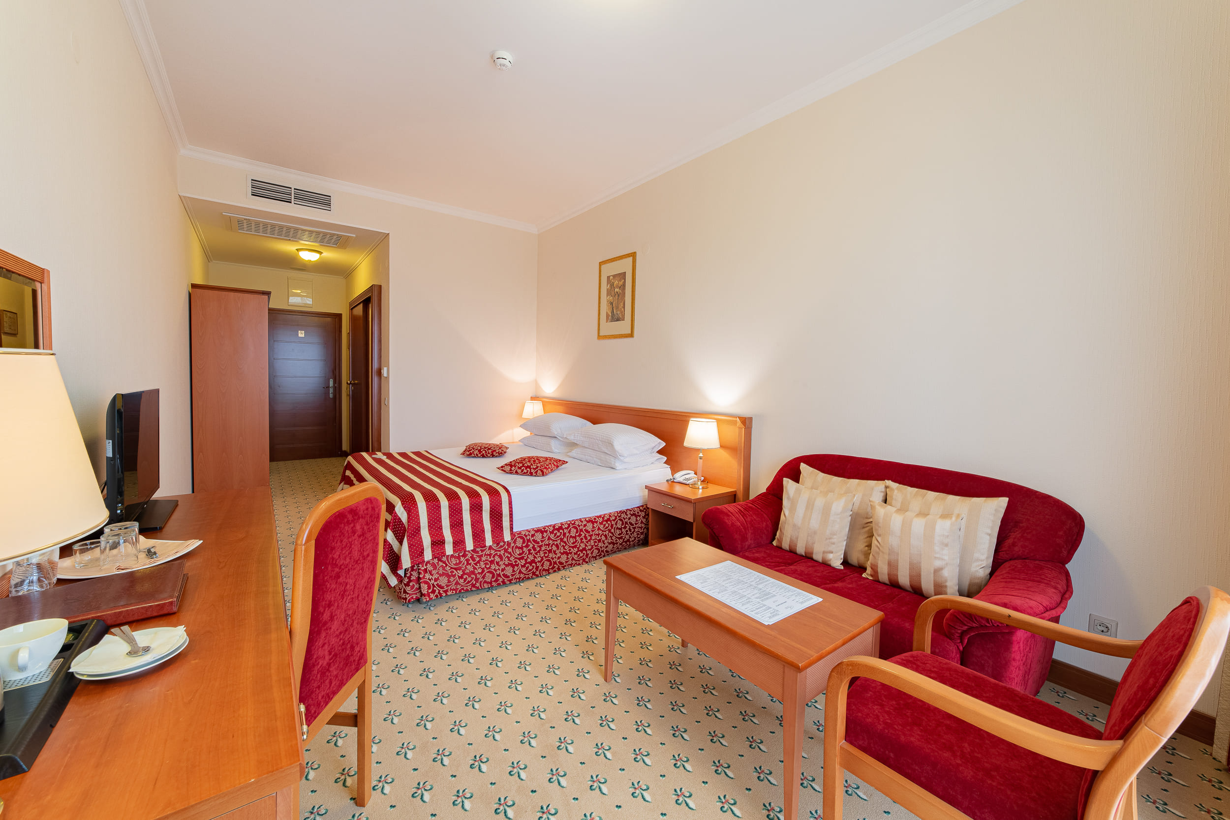 Suite Premium (50 кв.м.). Комфортабельный люкс-номер с балконом для размещения гостей - идеальный выбор для семьи или компании друзей. Площадь номера позволяет комфортно разместиться на длительный срок. Номер Люкс Premium - отличное решение для деловой поездки и комфортного отдыха. Бронируя номер в Гранд Отеле Валентина закажите трансфер и мы встретим Вас в назначенное время!