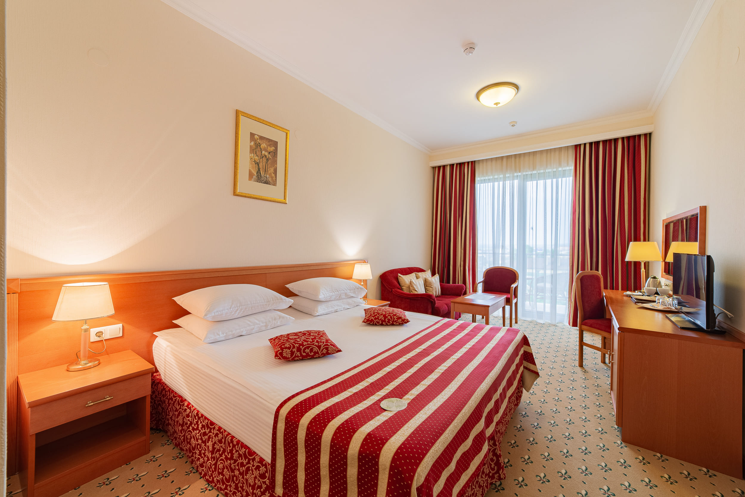 Standard Double room с видом на город (21 кв.м.). Standard Double room с видом на город - стандартный однокомнатный номер с балконом для тех, кто предпочитает путешествовать вдвоем. В вашем распоряжении номер оборудованный всем необходимым для комфортного проживания. Лучший ресторан Анапы Freesia предлагает вкуснейшие завтраки европейской кухни в низкий сезон по континентальному меню, а в высокий сезон - шведский стол. Бронируя номер в Гранд Отеле Валентина закажите трансфер и мы встретим Вас в назначенное время!