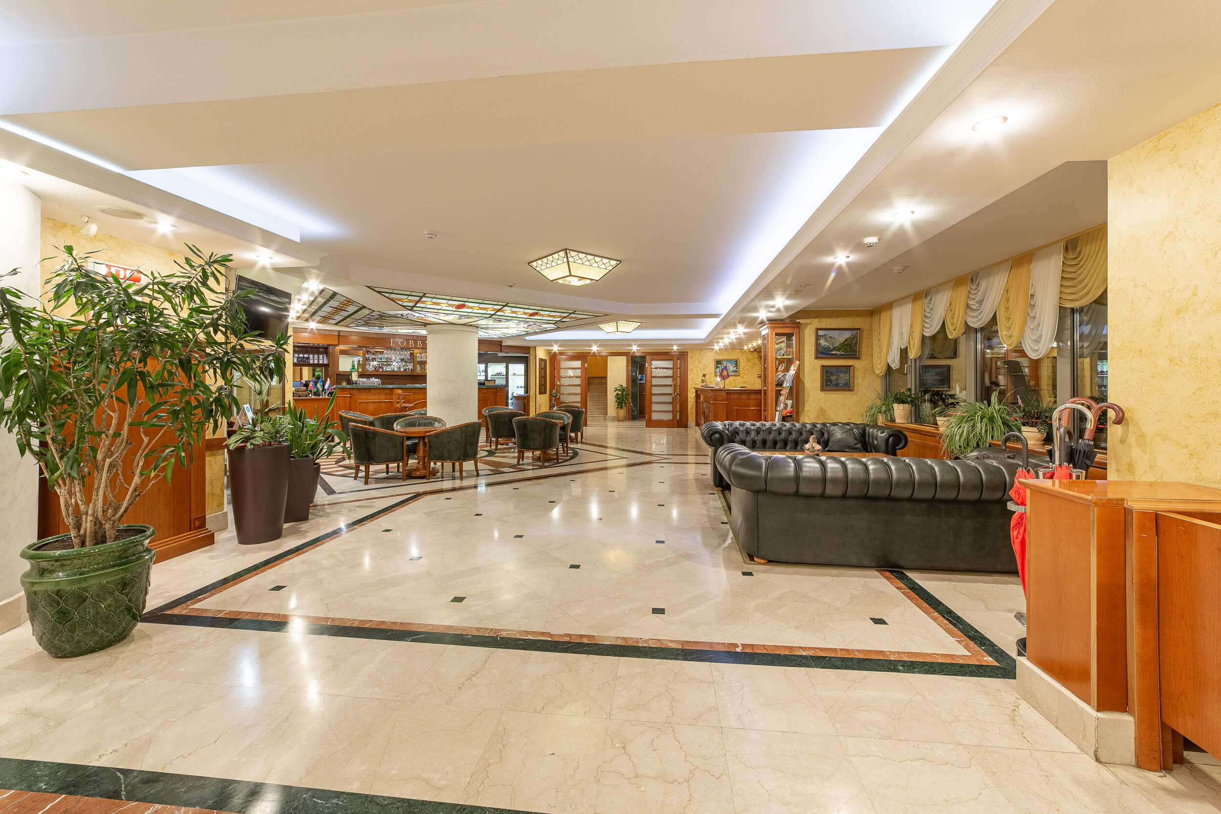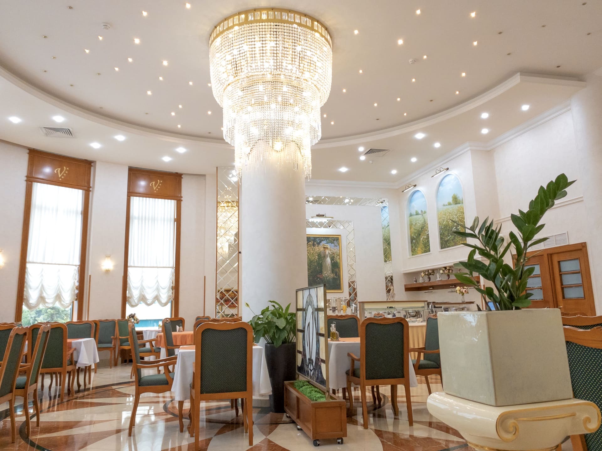 Suite President (150 кв.м.). Роскошь Президентского номера Suite President достойна внимания самых именитых гостей, среди которых деятели культуры и искусства, политики, звезды шоу-бизнеса. Просторные апартаменты состоящие из 5 комнат и балкона. Интерьер выполнен в благородных тонах, а каждый миллиметр пространства продуман до мелочей. В номере – просторная гостиная, спальная комната, столовая, комната для охраны, а также детская спальня и ванная комната.