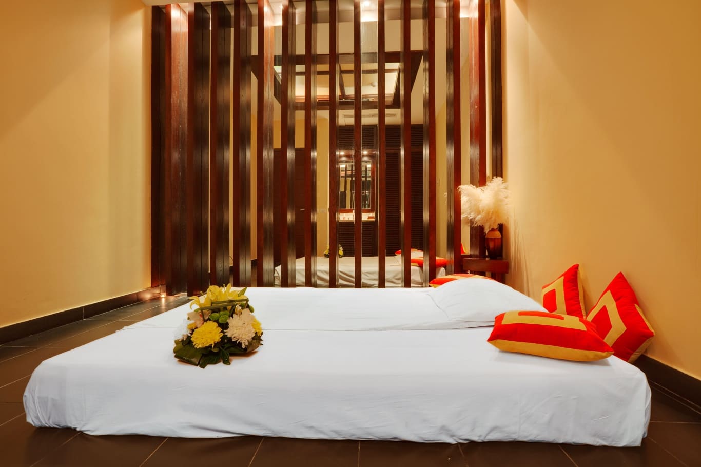 526 номеров, 9 вилл, 4 ресторана, 5 баров, кафе, песчаный пляж, 2 открытых бассейна, джакузи, SPA-центр (9 процедурных кабинетов, небольшой бассейн, сауна, парная, массаж, скрабы, обёртывания, гидротерапия, ароматерапия, стоунтерапия, рефлексология, процедуры по уходу за лицом и телом), тренажёрный зал, теннисные корты, дайвинг, снорклинг, прогулки на катере, библиотека, бизнес-центр, банкетный зал (до 300 человек), 5 конференц-залов (до 250 человек), детский клуб с бассейном (временно закрыт), услуги консьержа, парковка. Неподалёку: школа дайвинга и снорклинга.
