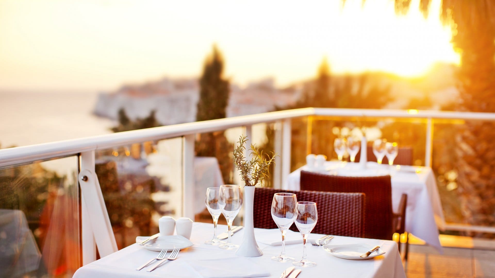 Standard room sea view with balcony (Villa Glavic): спальня, ванная комната с ванной или душевой кабиной. Расположены на вилле Glavic, находящейся через дорогу от главного здания. Вид на море и Старый город Дубровника.