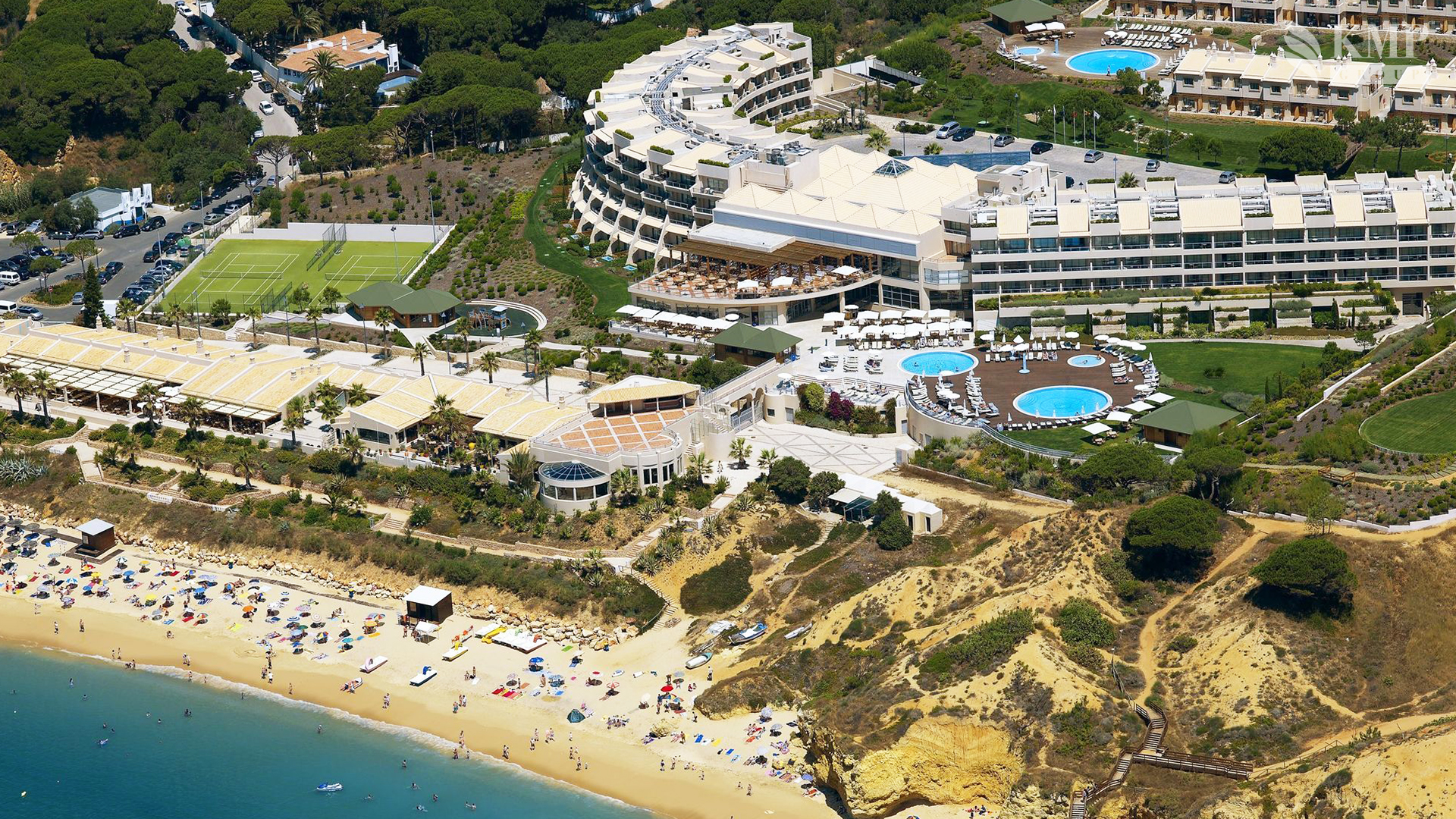 Grande Real Santa Eulalia Resort & Hotel Spa – один из лучших отелей Алгарви. Этот превосходный курорт расположен на побережье Атлантического океана в двух шагах от знаменитого пляжа Санта-Эулалия. Белоснежное здание отеля выполнено в форме полумесяца. Внутреннее убранство продумано до мелочей: изысканная мозаика золотистого цвета, элегантная мягкая мебель, декоративные кованые элементы. Великолепные интерьеры номеров оформлены в горчичных, ванильных и малиновых тонах.