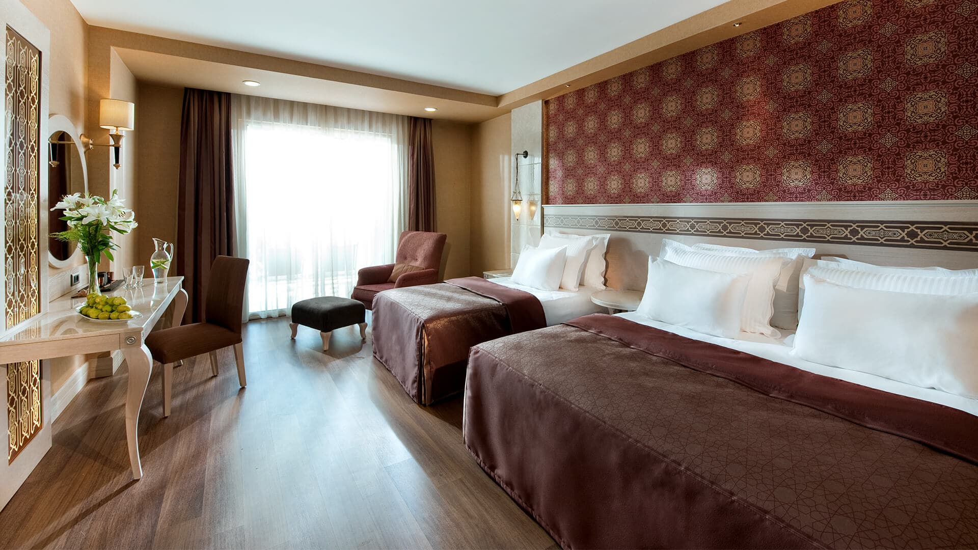 Presidential suite терраса с открытым персональным бассейном, 3 спальни (две – с гостиной зоной), гардеробная, 3 ванные комнаты.