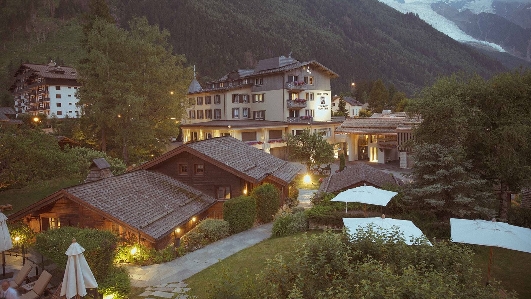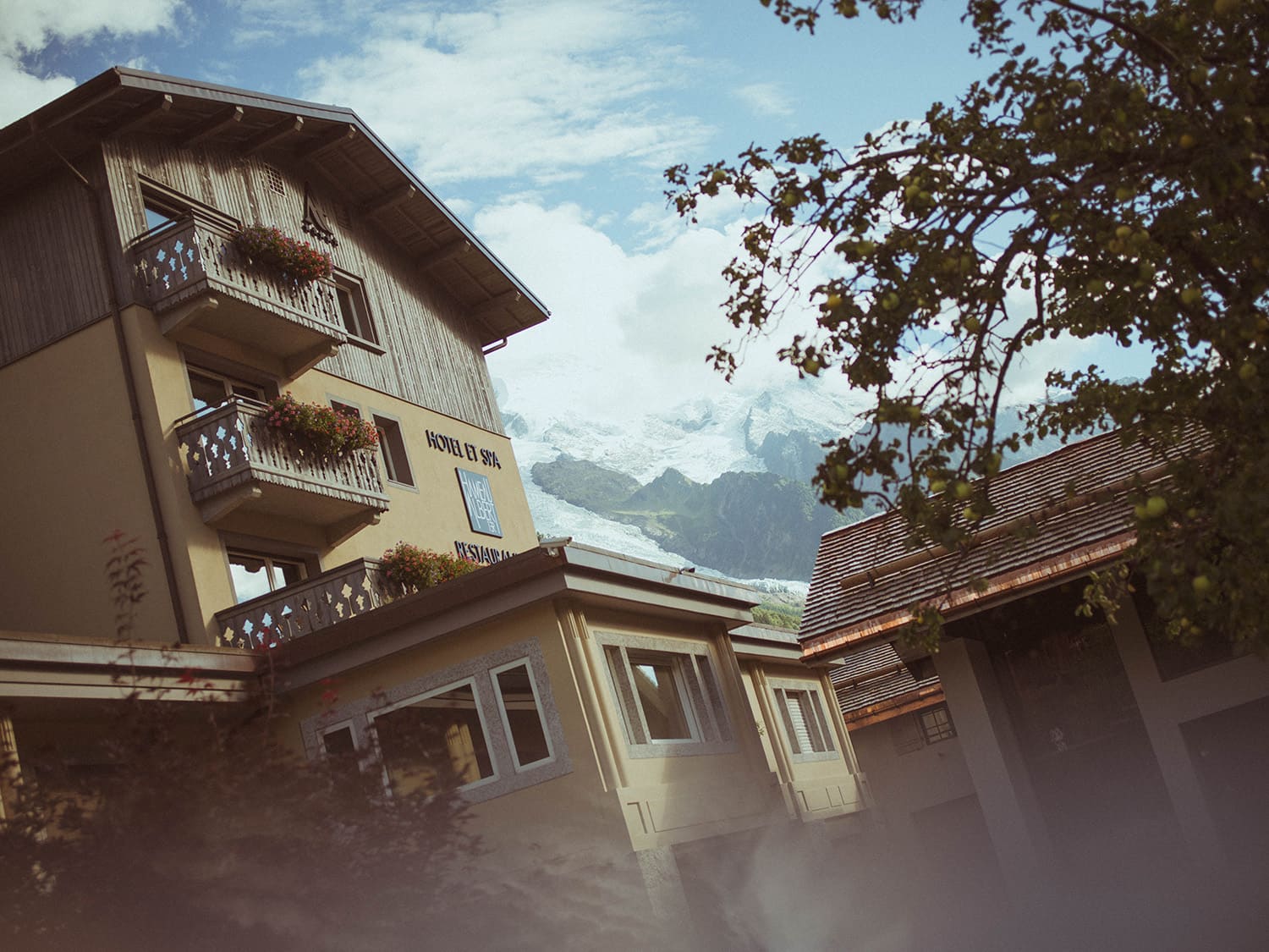 Classic room (23 кв. м). Спальня, ванная комната. Расположен в основном здании. Вид на деревню Aiguilles.