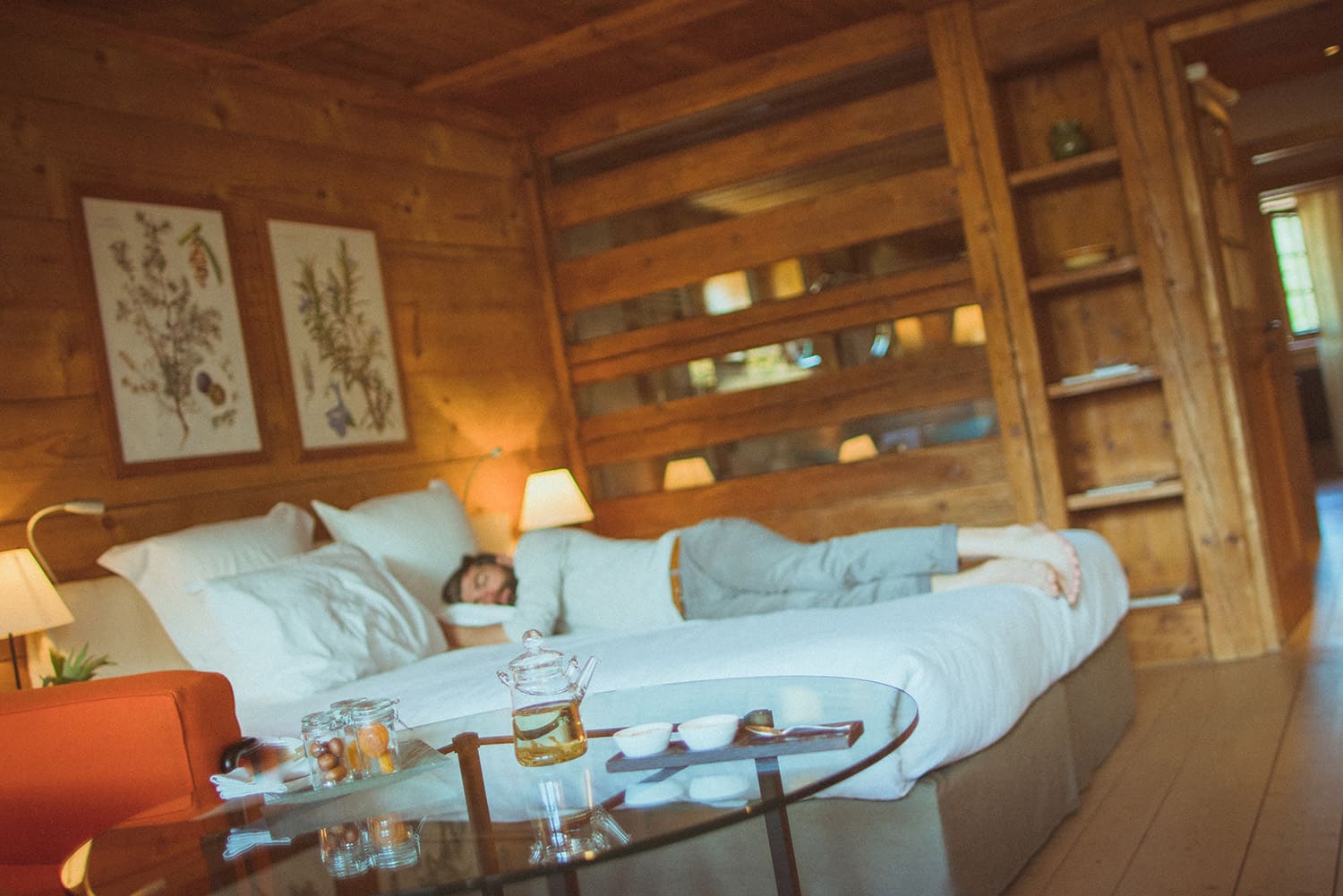 Suite Blaitiere (90 кв. м). Терраса, гостиная, 2 спальни (каждая – с двуспальной или двумя отдельными кроватями), 2 ванные комнаты (одна – с джакузи и душем с функцией парной, вторая – с душем). Вид на Эгий де Блетьер и Монблан.