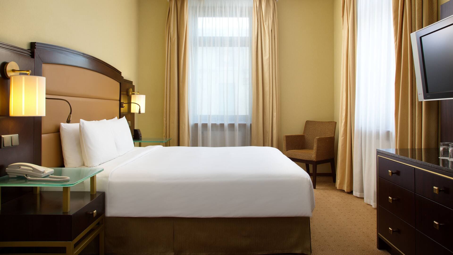 В отеле «Хилтон Москва Ленинградская» предлагаются современные номера со спутниковым телевидением, принадлежностями для чая/кофе, рабочим столом и собственной ванной комнатой с туалетно-косметическими принадлежностями. Из некоторых номеров открывается вид на центр Москвы.