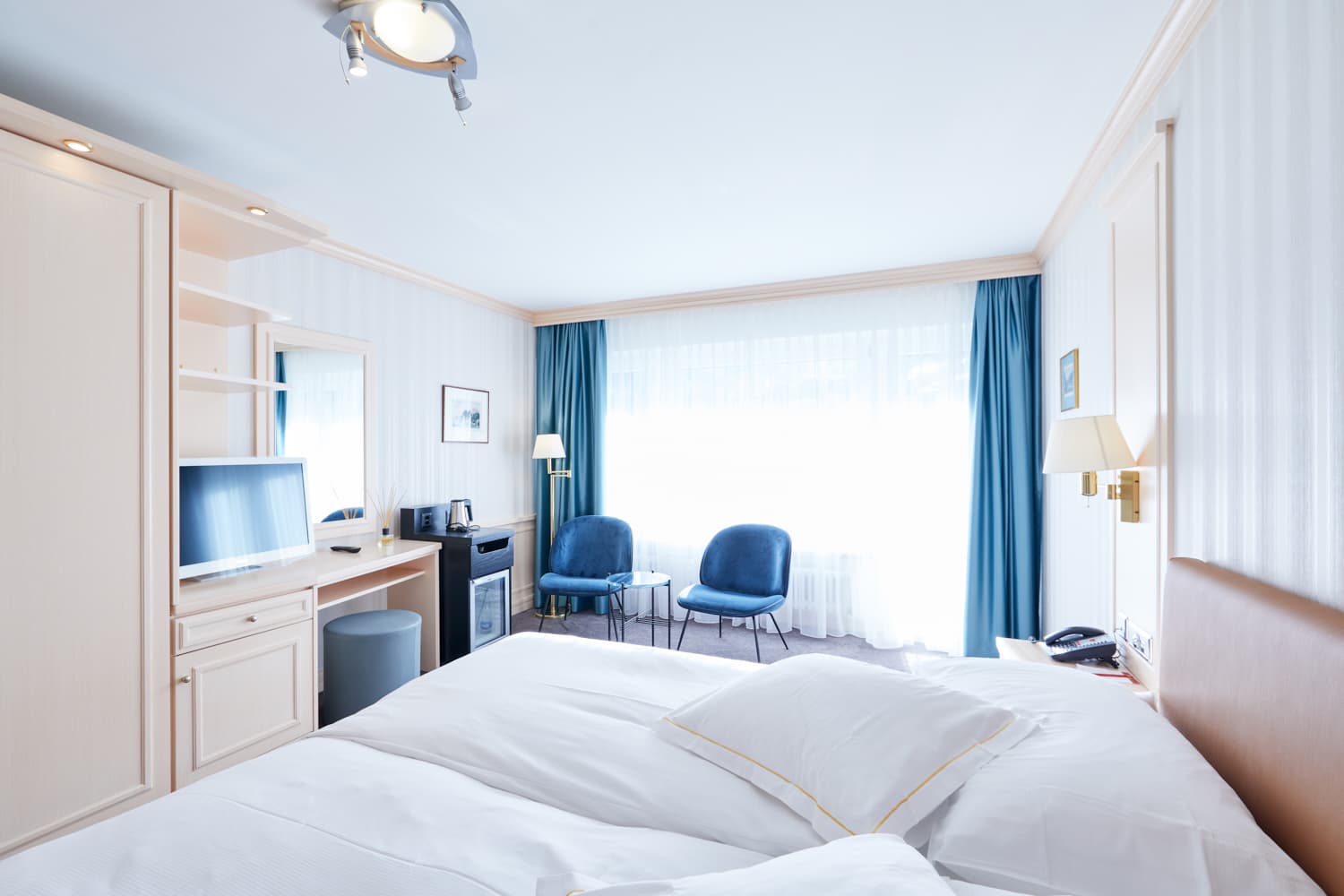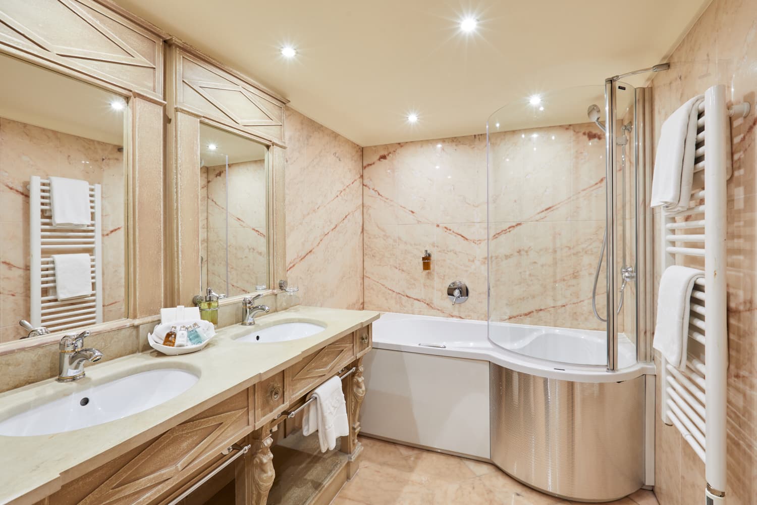 Classic junior suite (40-44 кв. м). Балкон, гостиная, спальня с двуспальной кроватью, ванная комната с джакузи. Некоторые номера имеют открытую планировку: гостиная и спальная зоны не разделены. В некоторых номерах – мансардные потолки.