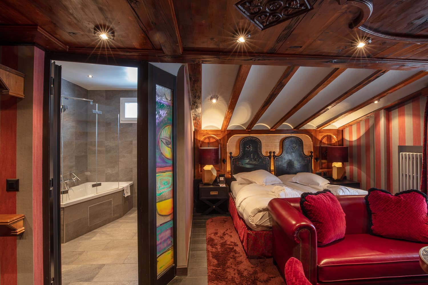 Deluxe suite (58-76 кв. м). Балкон, гостиная, спальня с двуспальной кроватью, ванная комната с джакузи. Некоторые номера имеют открытую планировку: гостиная и спальная зоны не разделены. В некоторых номерах – мансардные потолки.