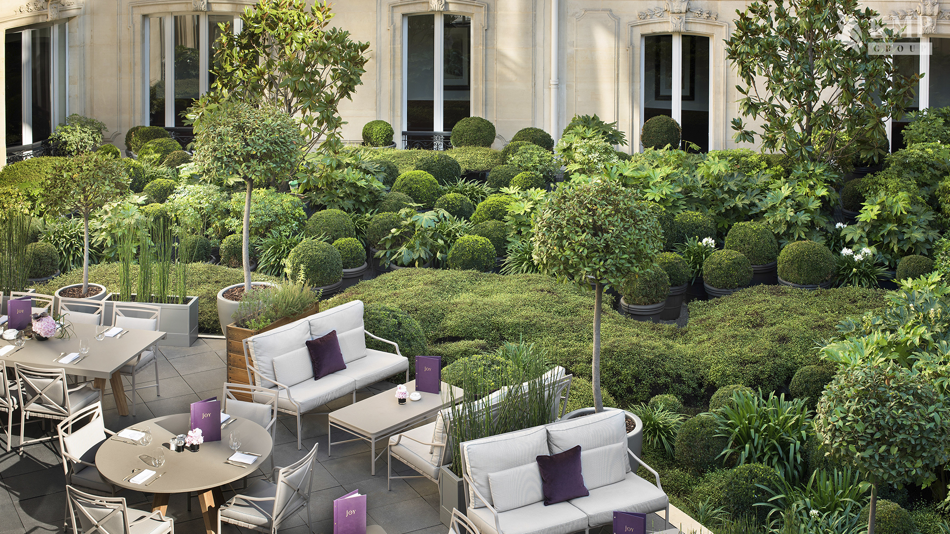 Deluxe junior suite (50 кв. м). Спальня с гостиной зоной, гардеробная, ванная комната с ванной и душевой кабиной. Вид на внутренний сад или улицу Avenue George V.