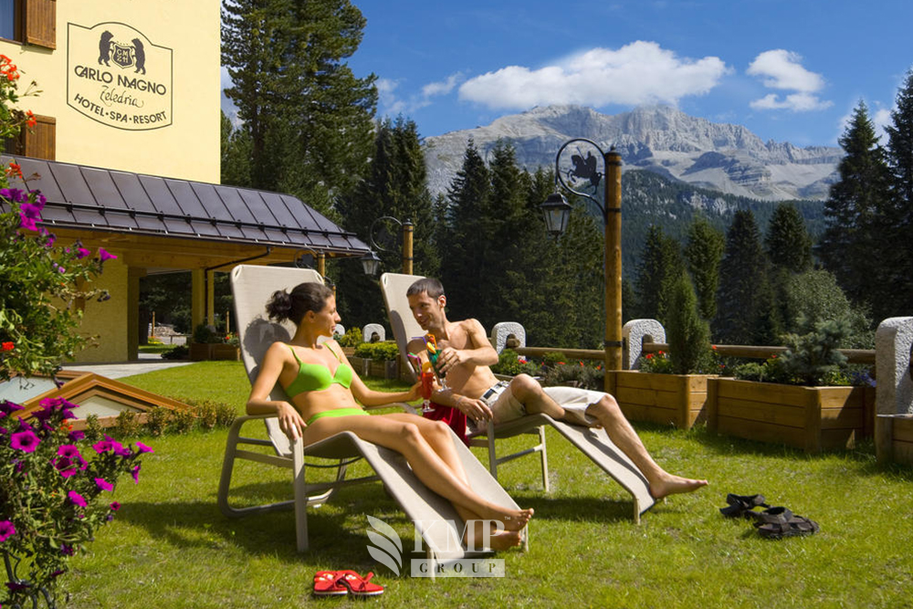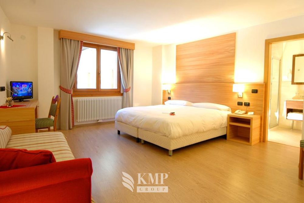 Carlo Magno Suite (65 кв. м). Состоит из 2 спален, гостиной комнаты, 2 ванных комнат с ванной и душем, балкона с видом на Доломитовые Альпы. Дополнительно в номере – доступ в Интернет ADSL.