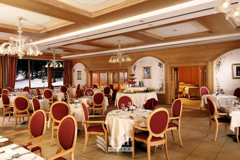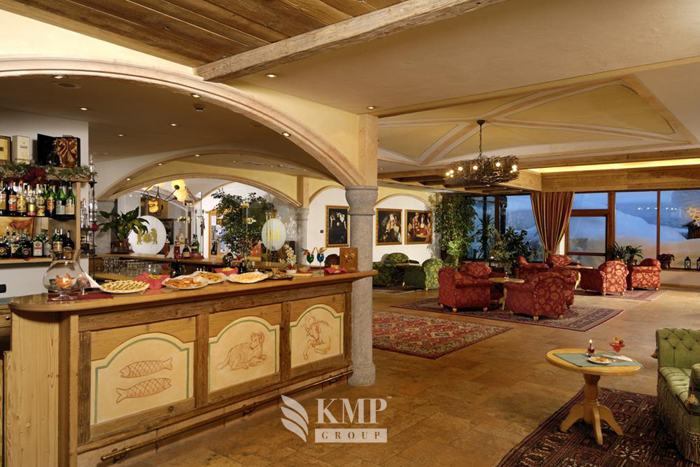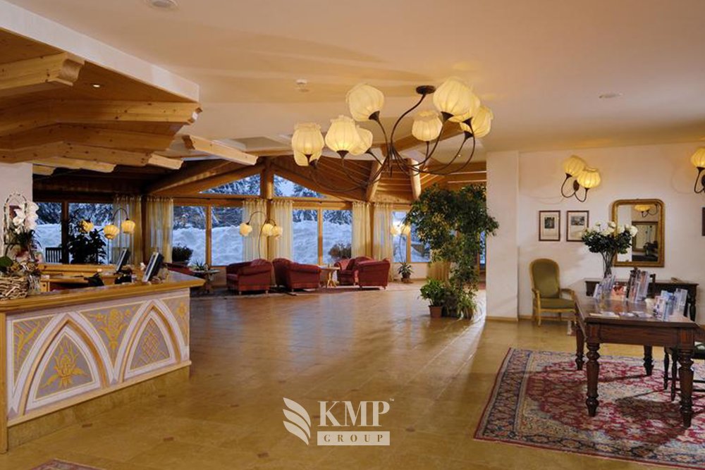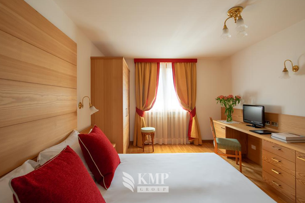 Junior Suite (приблизительно 45-50 кв. м). Состоит из спальни, гостиной, ванной комнаты, отдельной туалетной комнаты, гардеробной, балкона с видом на Доломитовые Альпы. Дополнительно в номере – доступ в Интернет ADSL.