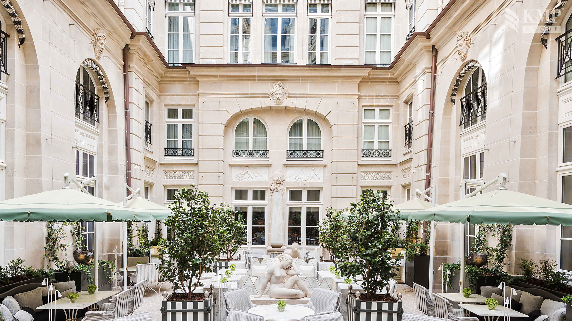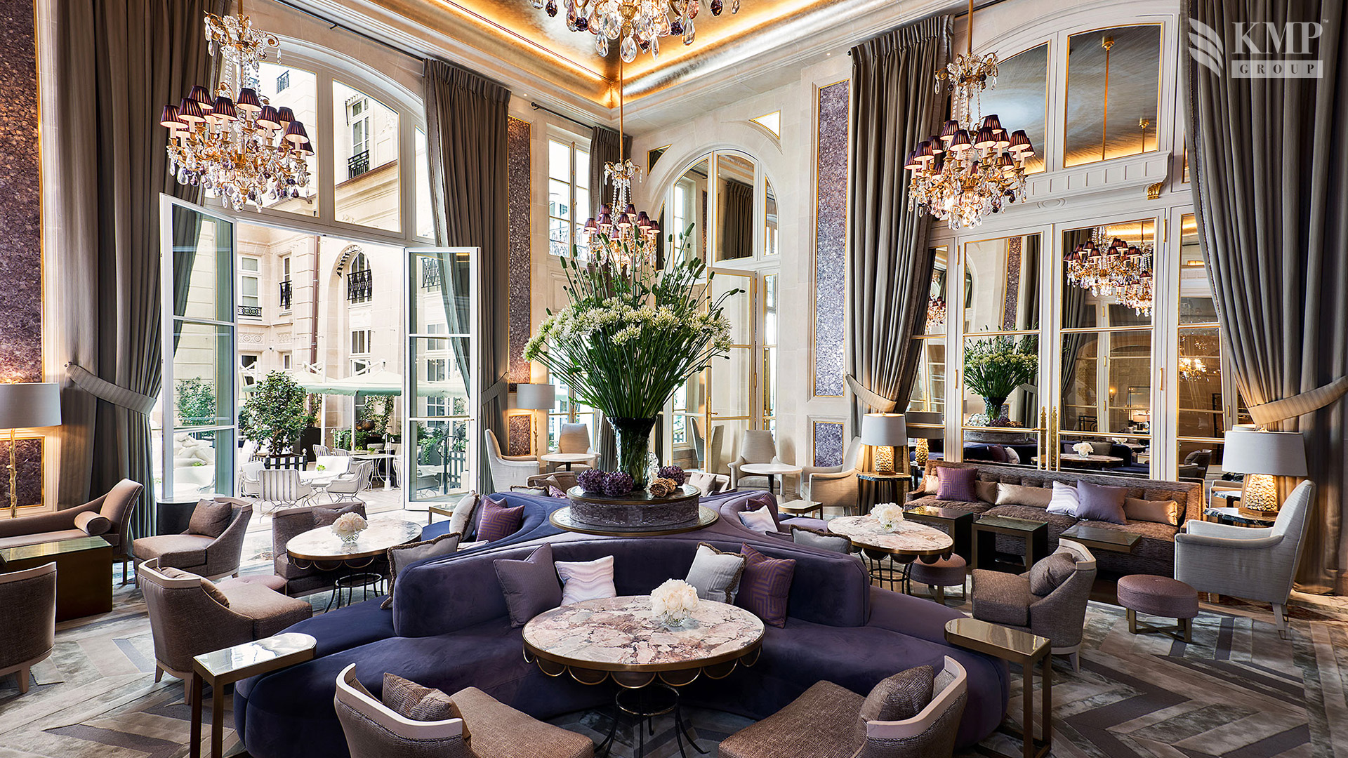 Suite Louis XV (116 кв. м). Терраса, гостиная, спальня с кроватью king-size, гардеробная, ванная комната с ванной и душевой кабиной с функцией «тропический дождь». Расположен на 6 этаже. Вид на Cour d’Honneur. Возможно объединение с номером Suite Bernstein. Услуги дворецкого.