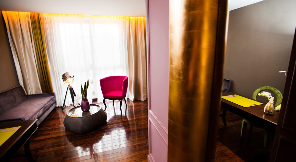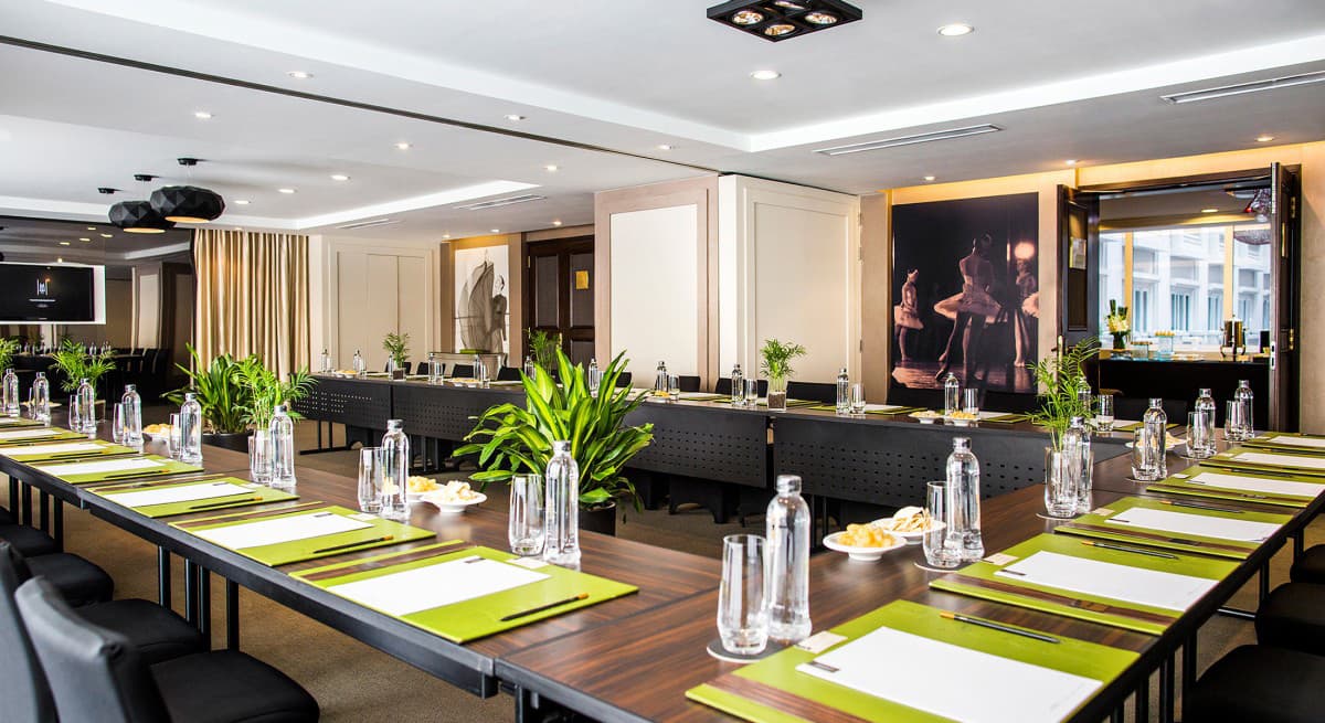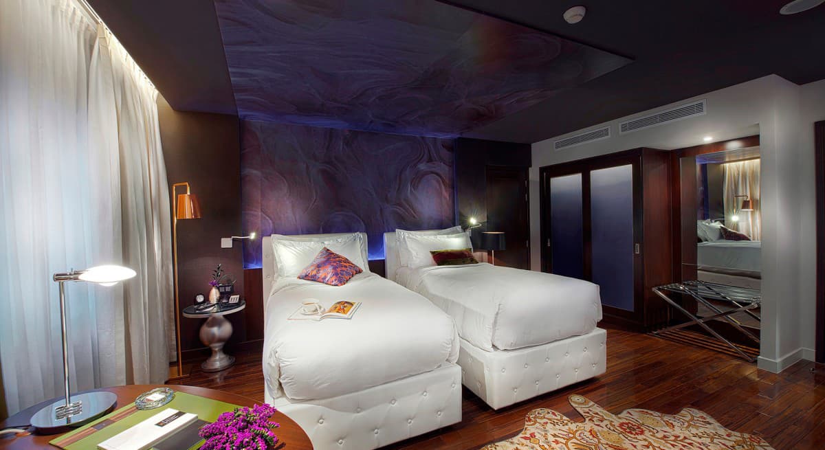 Интерьеры роскошного Hotel de l’Opera Hanoi выдержаны в элегантном современном стиле. Насыщенные цвета, картины и элементы декора в духе абстракционизма создают неповторимую атмосферу. В цветовой гамме преобладают золотистые и коричневые цвета, яркие пятна бирюзового и малинового оживляют комнаты. Из окон открываются виды на Ханой: очаровательные улочки, площади и красивейший оперный театр.