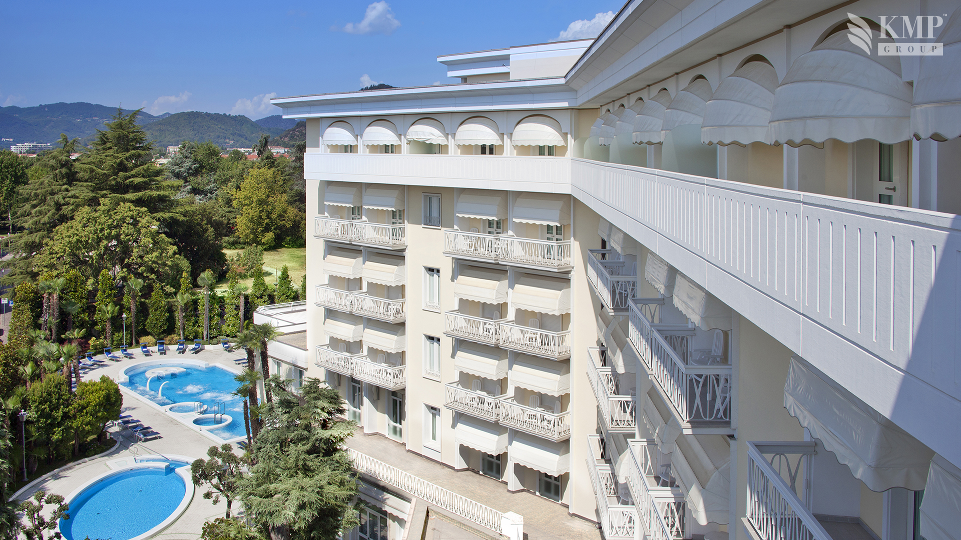 Deluxe Panorama (35 кв. м). Балкон с видом на парк с бассейнами и Эуганские Холмы).
