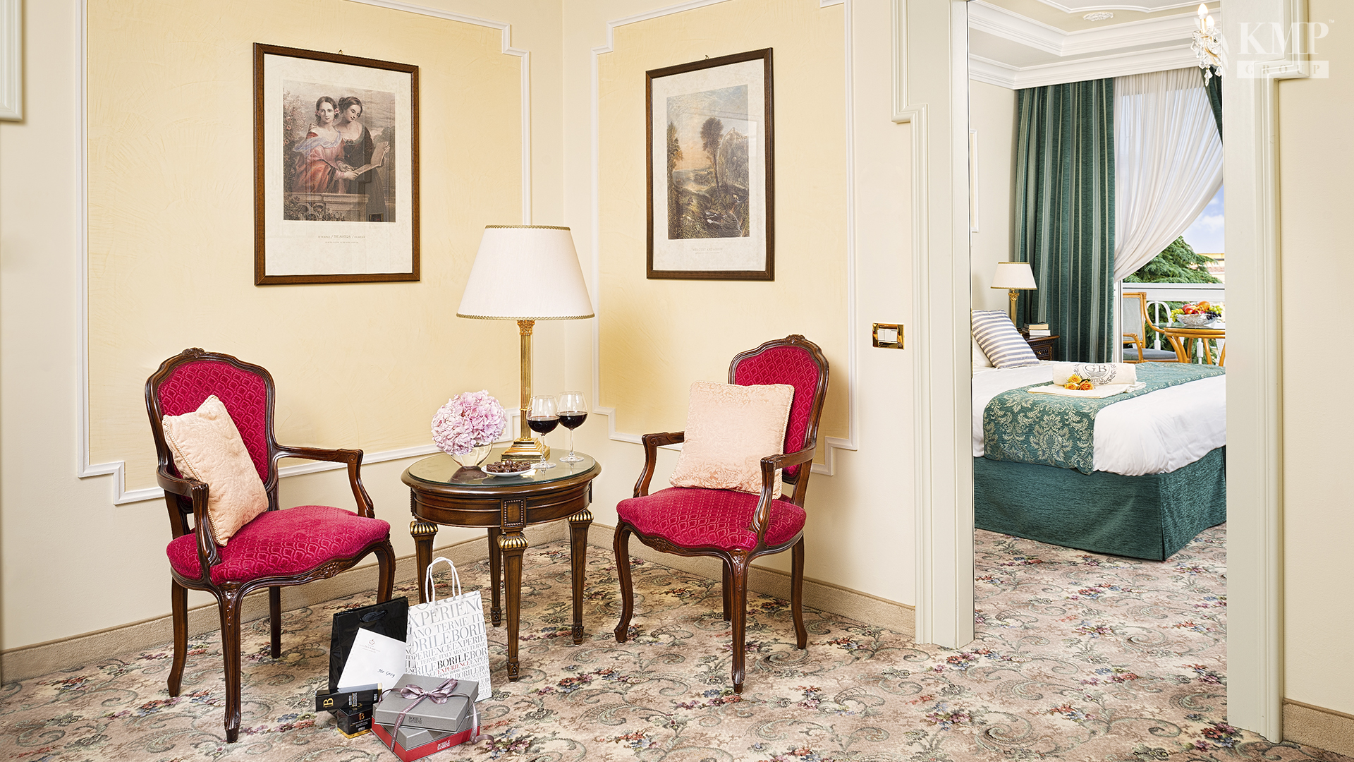 Suite Due Torri (73 кв. м). Двухкомнатные сьюты с гостиной и спальней. Терраса с видом на парк отеля).