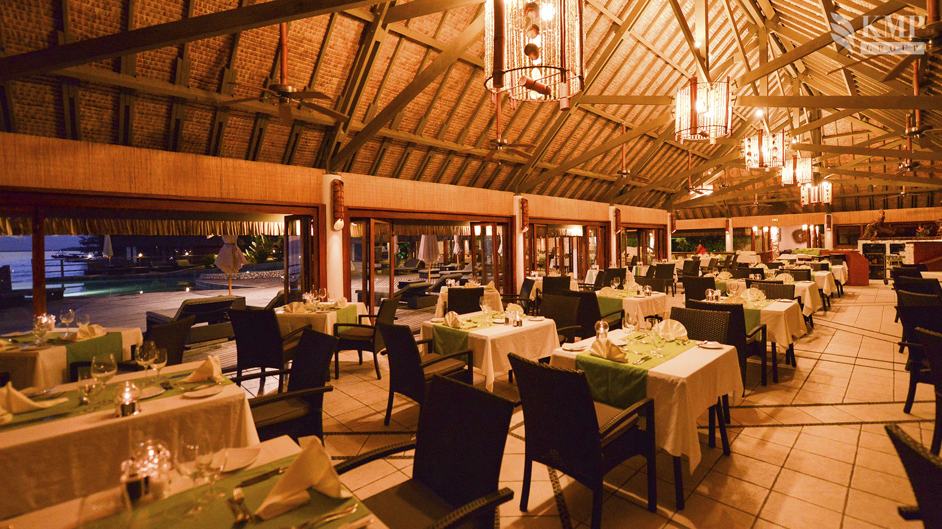 60 вилл, ресторан, бар, открытый бассейн, джакузи на открытом воздухе, спа-центр, тренажерный зал, бильярд, каяки, каноэ, дайвинг, снорклинг, Wi-Fi доступ в Интернет, услуги няни (по запросу).