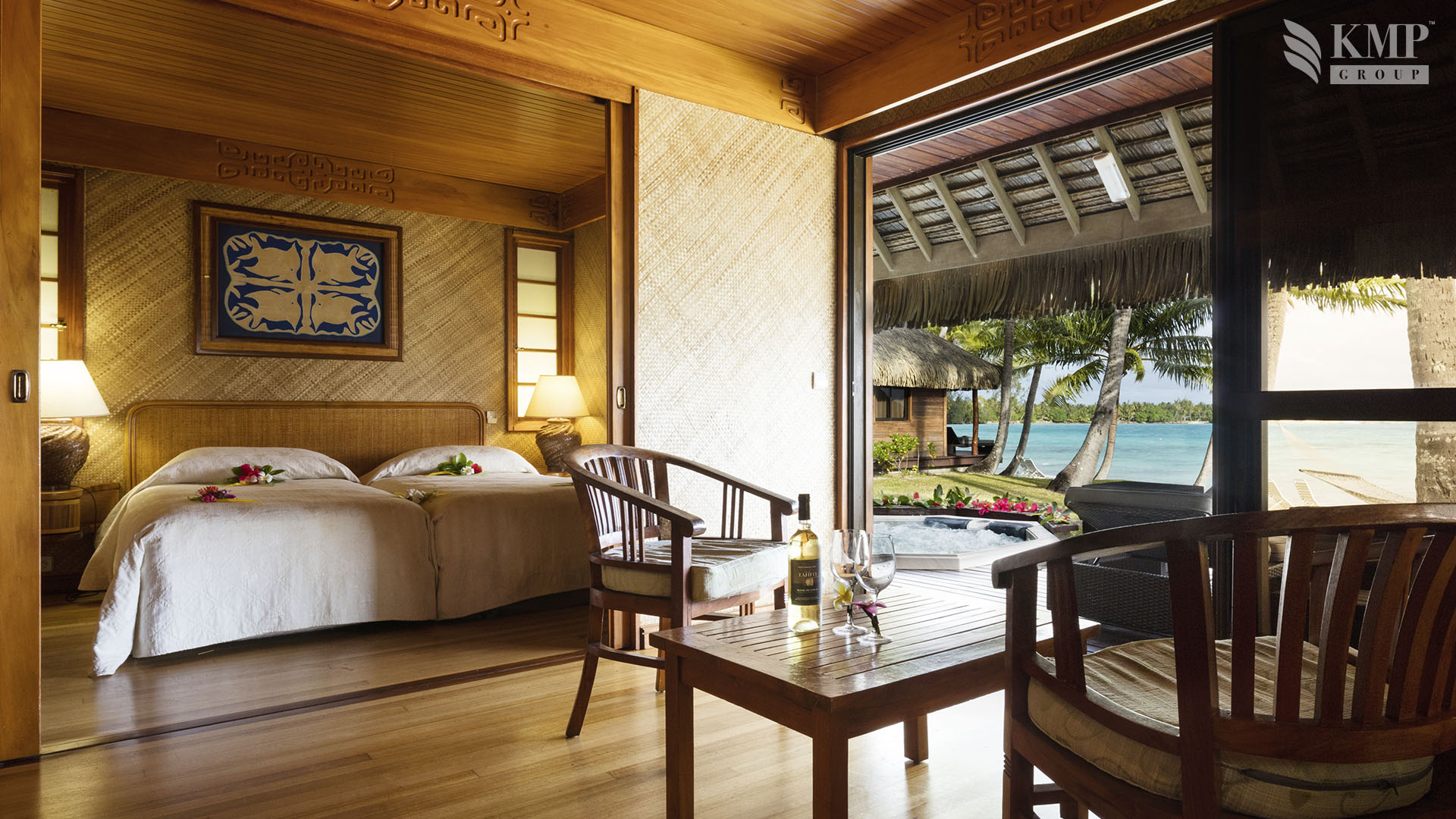 Beach bungalow with jacuzzi (42 кв. м). Терраса (18 кв. м) с джакузи на открытом воздухе, спальня с гостиной зоной (кровать king-size), ванная комната с душем. Панорамный вид на лагуну.