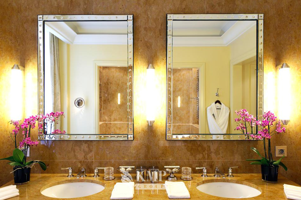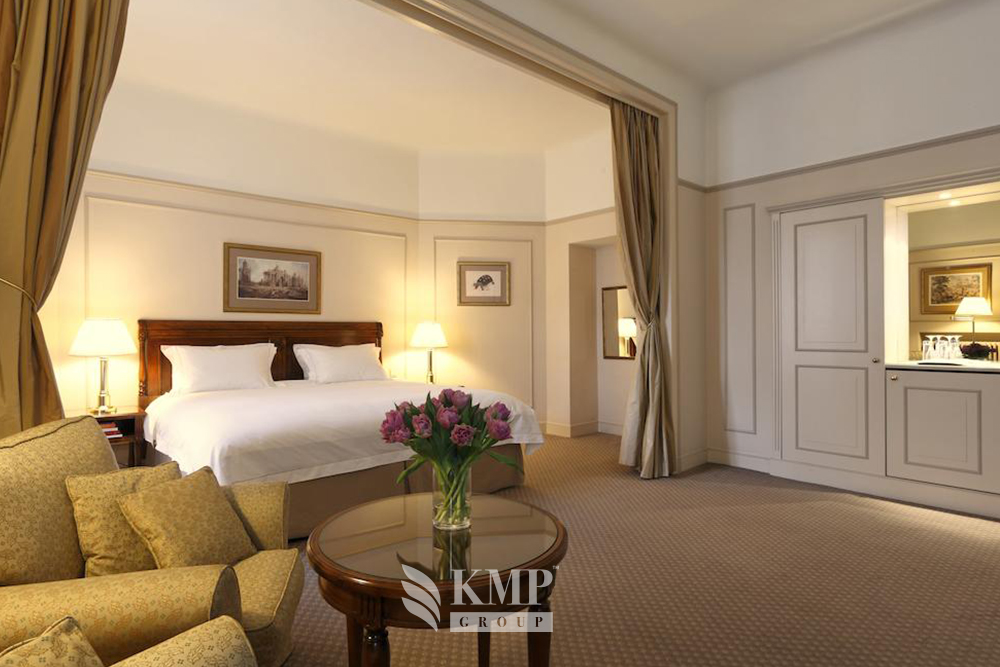 Presidential suite (350 кв. м). Гостиная, столовая, кухня, 3 спальни (две – с кроватью king-size, одна – с двумя отдельными кроватями), 2 гардеробные, ванные комнаты (одна – с джакузи). Расположен на 5 этаже. Услуги персонального камердинера.