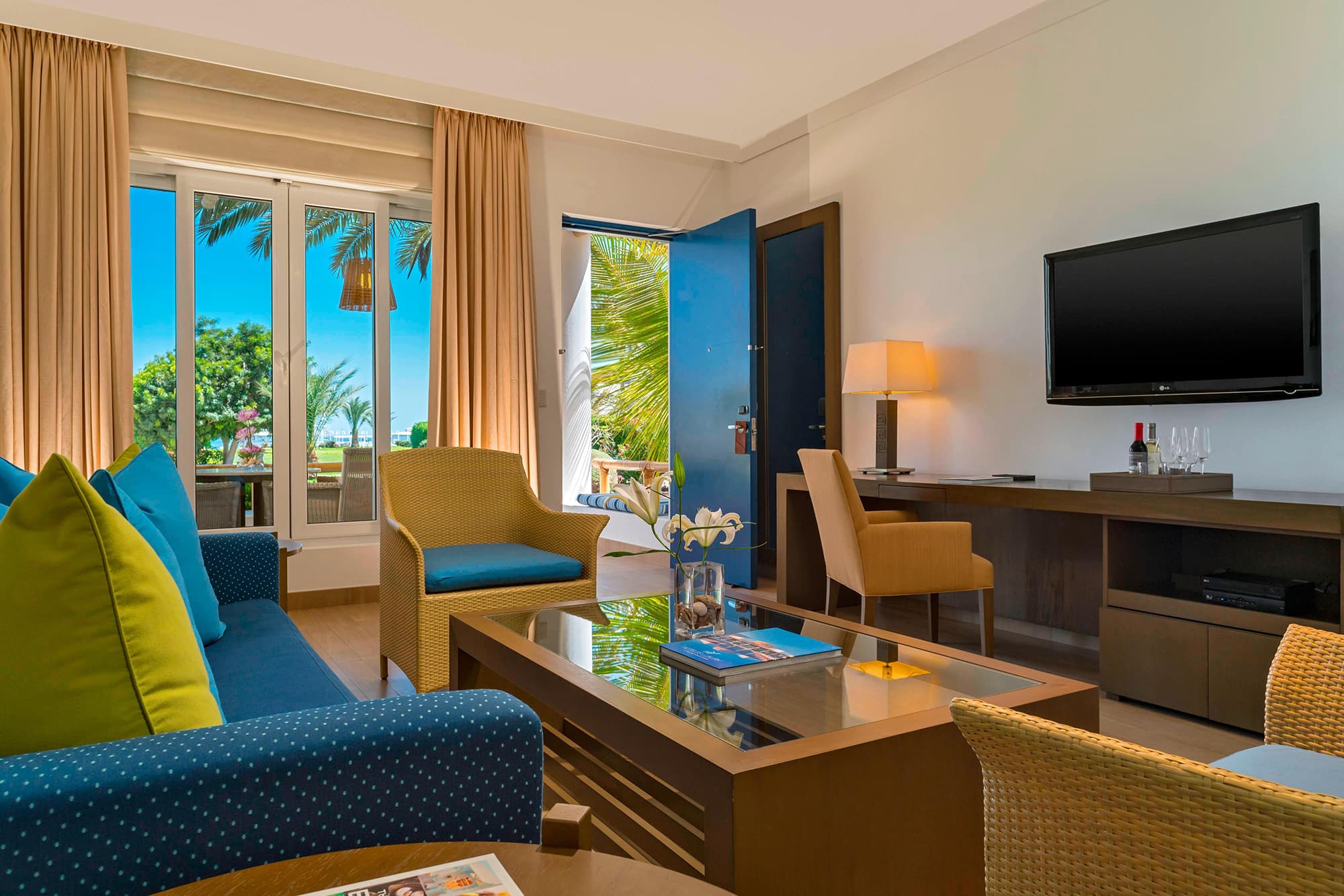 Кабельное телевидение, док-станция для iPod, радио, WI-FI доступ в Интернет, телефон, голосовая почта, телефон в ванной комнате, мини-бар, сейф, утюг и гладильная доска, фен, халаты. Необходимо уточнять оборудование конкретной категории номеров. Возможно объединение номеров.