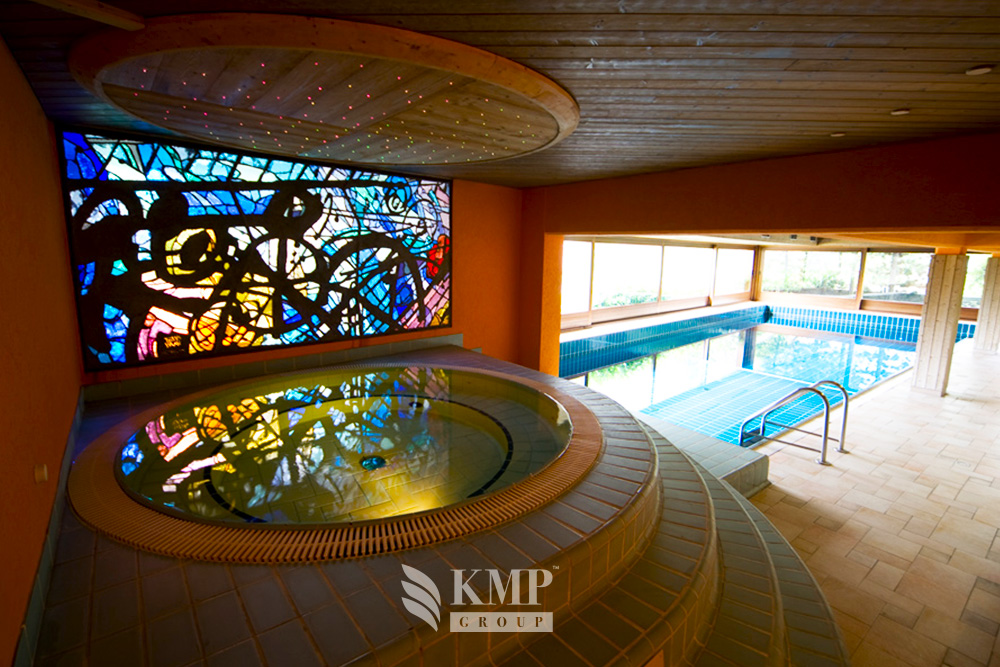 50 номеров, ресторан, бар, тренажерный зал, сауна, спа-центр, бассейн, услуги консьержа, конференц-зал.