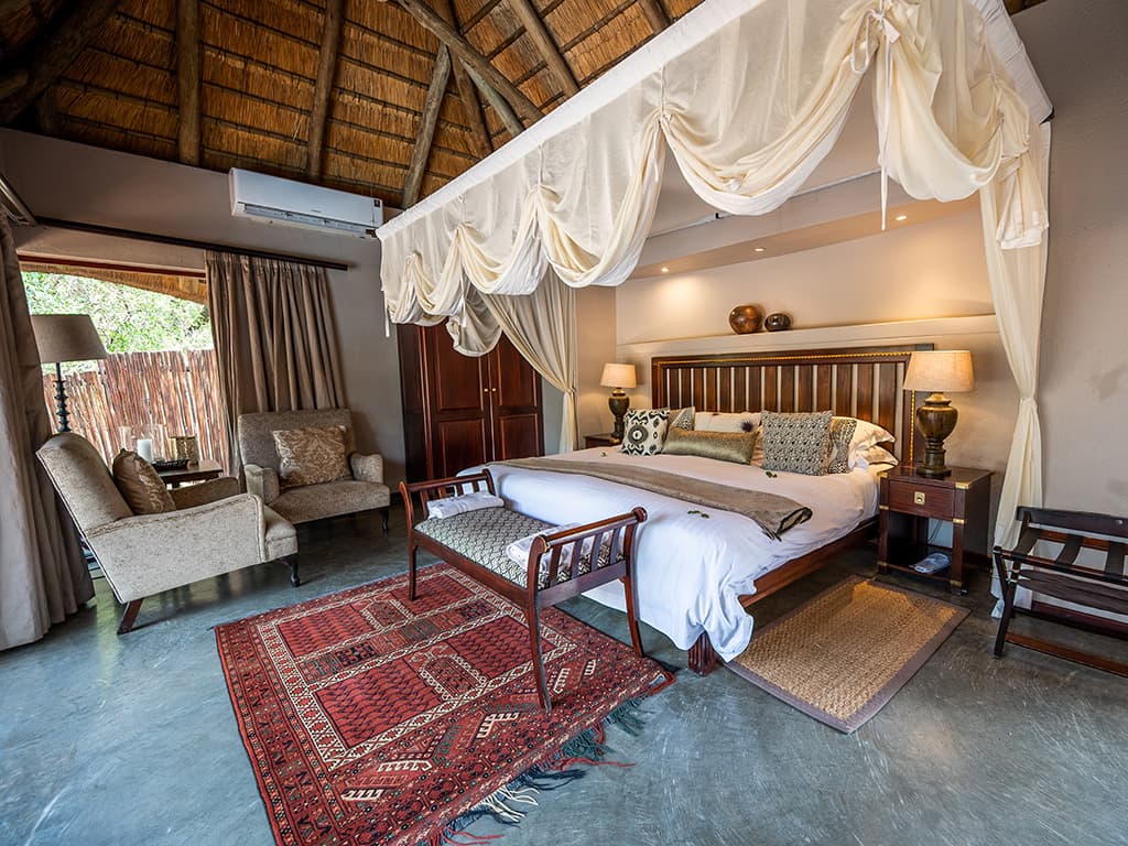 Комплекс, состоящий из нескольких деревянных шале с тростниковыми крышами, стилизован под традиционный африканский охотничий лодж. От одного домика к другому через густой буш тянутся подвесные деревянные дорожки. Из номеров открывается вид на долину реки Нватситсвонто и парк, в котором водятся все представители африканской «большой пятерки», а также антилопы, дикие птицы и экзотические насекомые. В лодже есть ресторан африканской кухни, дворик для приготовления традиционного африканского ужина при свете костра под открытым небом, большой открытый бассейн, предлагаются сафари на джипах, осуществляется трансфер из местных аэропортов Истгейт (Ходспрут) и KMI (Нельспрут).