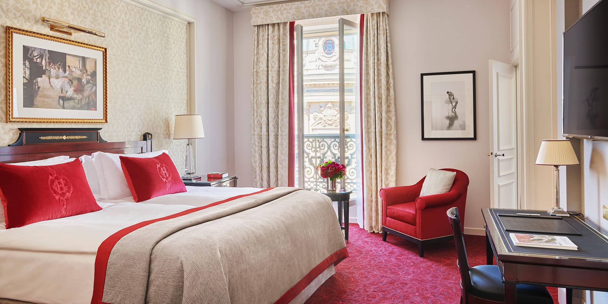 Исторические сьюты (Имперский, Президентский, Дипломатический и сьют Сара Бернар), расположены на углу Бульвара Капуцинок и площади Оперы и этот исключительный вид привносит в эти номера истинно парижскую атмосферу.