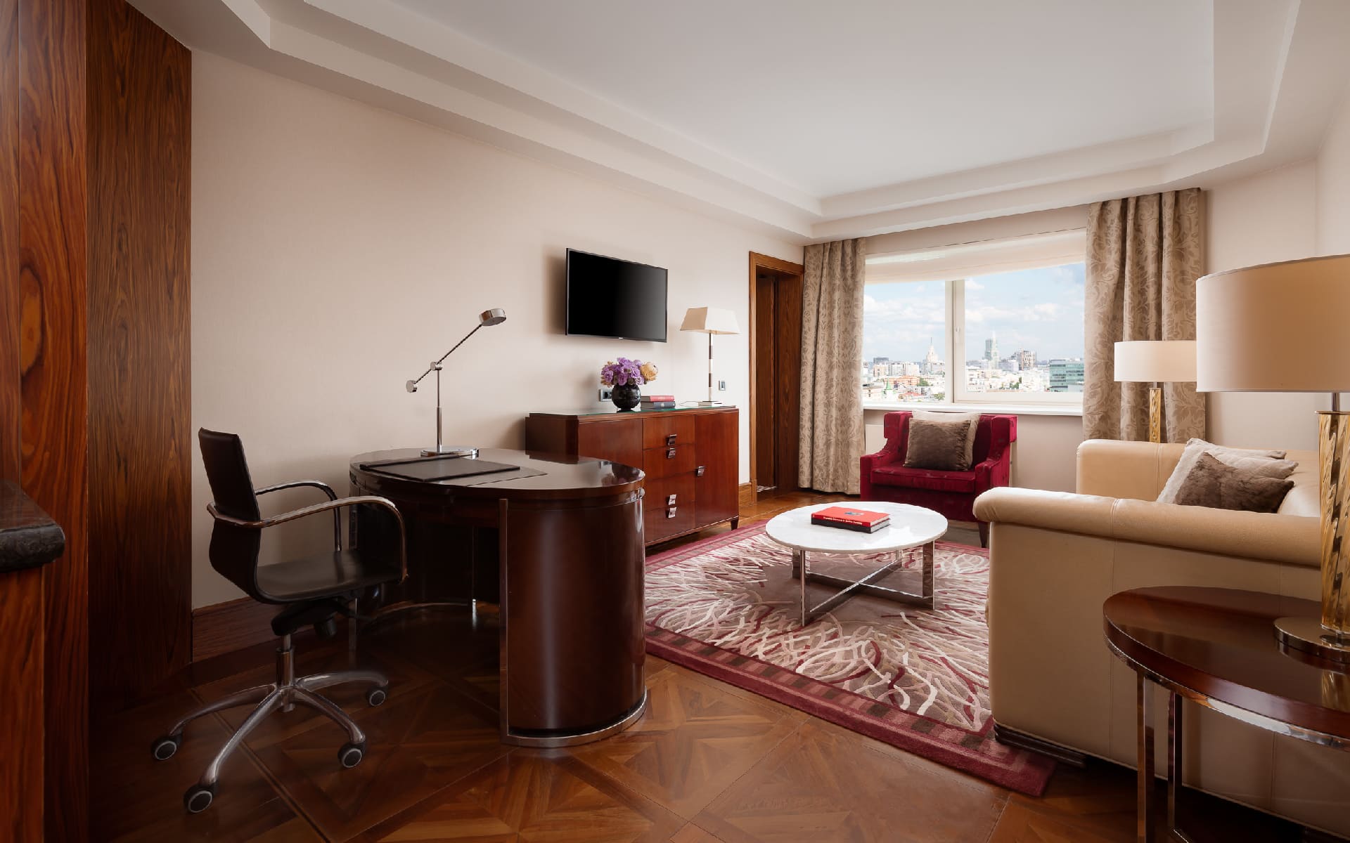 Элегантные номера отеля InterContinental Moscow Тверская обставлены мебелью из темного дерева и декорированы роскошными тканями. В распоряжении гостей док-станция для iPod, 42-дюймовый телевизор с плоским экраном, сейф для ноутбука и другие современные удобства.