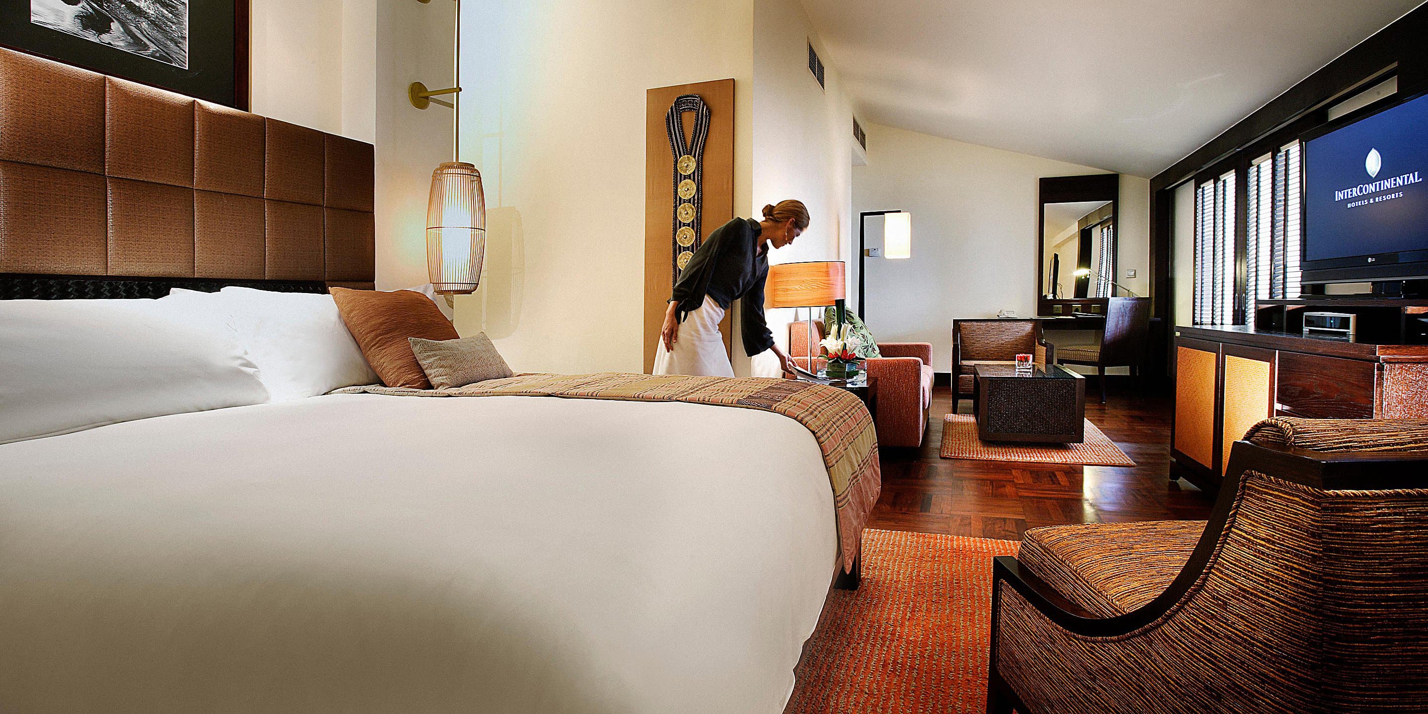 Вдели от городского шума и суеты расположился отель потрясающей красоты - InterContinental Hanoi Westlake. Его гости могу наслаждаться уединением и созерцать великолепие здешних мест прямо с собственных балконов. Номера, расположенные на сваях над водой, идеально подходят для романтического отдыха. Теплые бежевые и насыщенные шоколадные оттенки, использованные в интерьере, создают атмосферу уюта и гармонии.